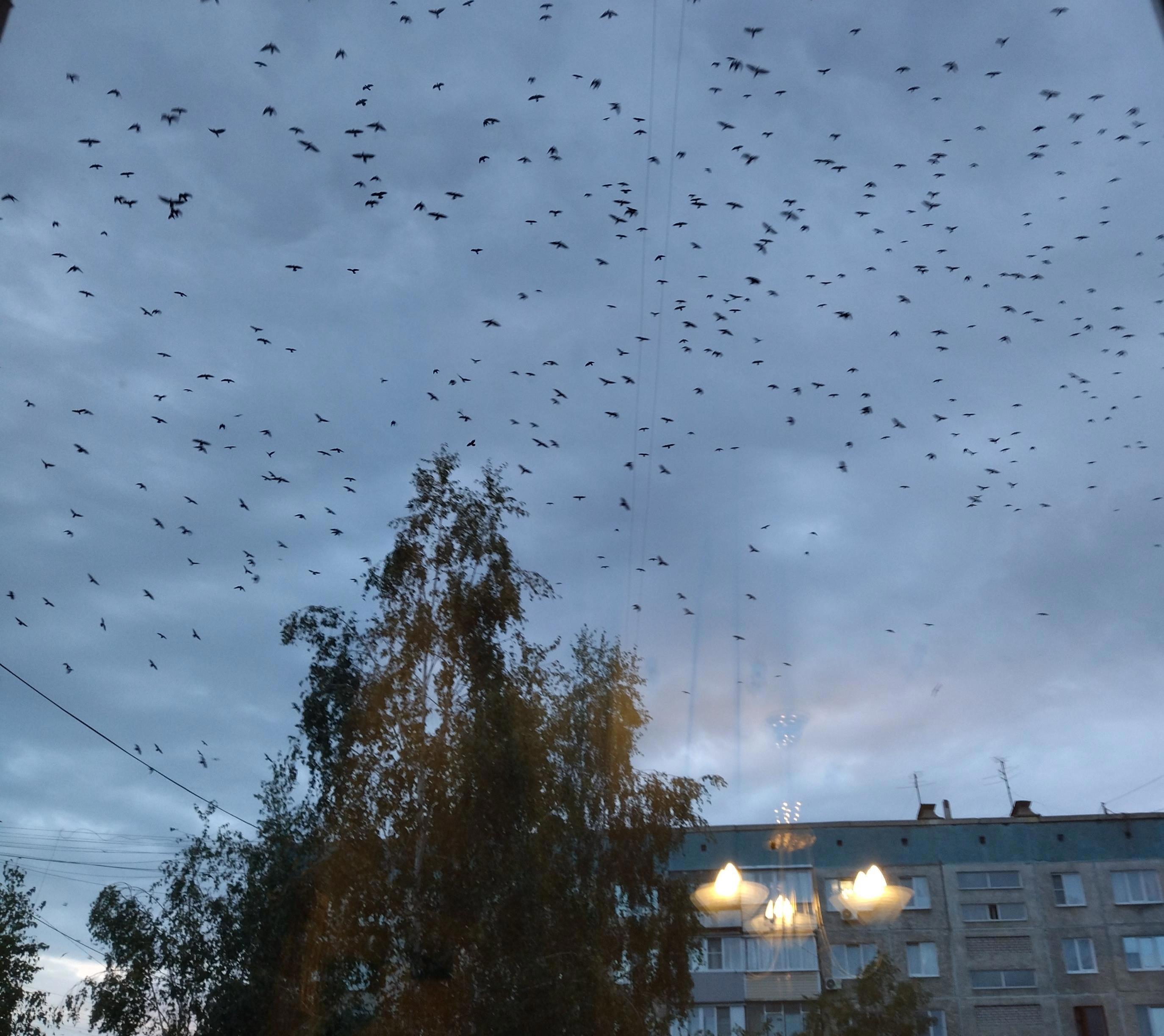 Листва ещё зелёная, но в небе птичья стая. Прощальный крик, прощальный круг над крышами домов. До следующей весны!