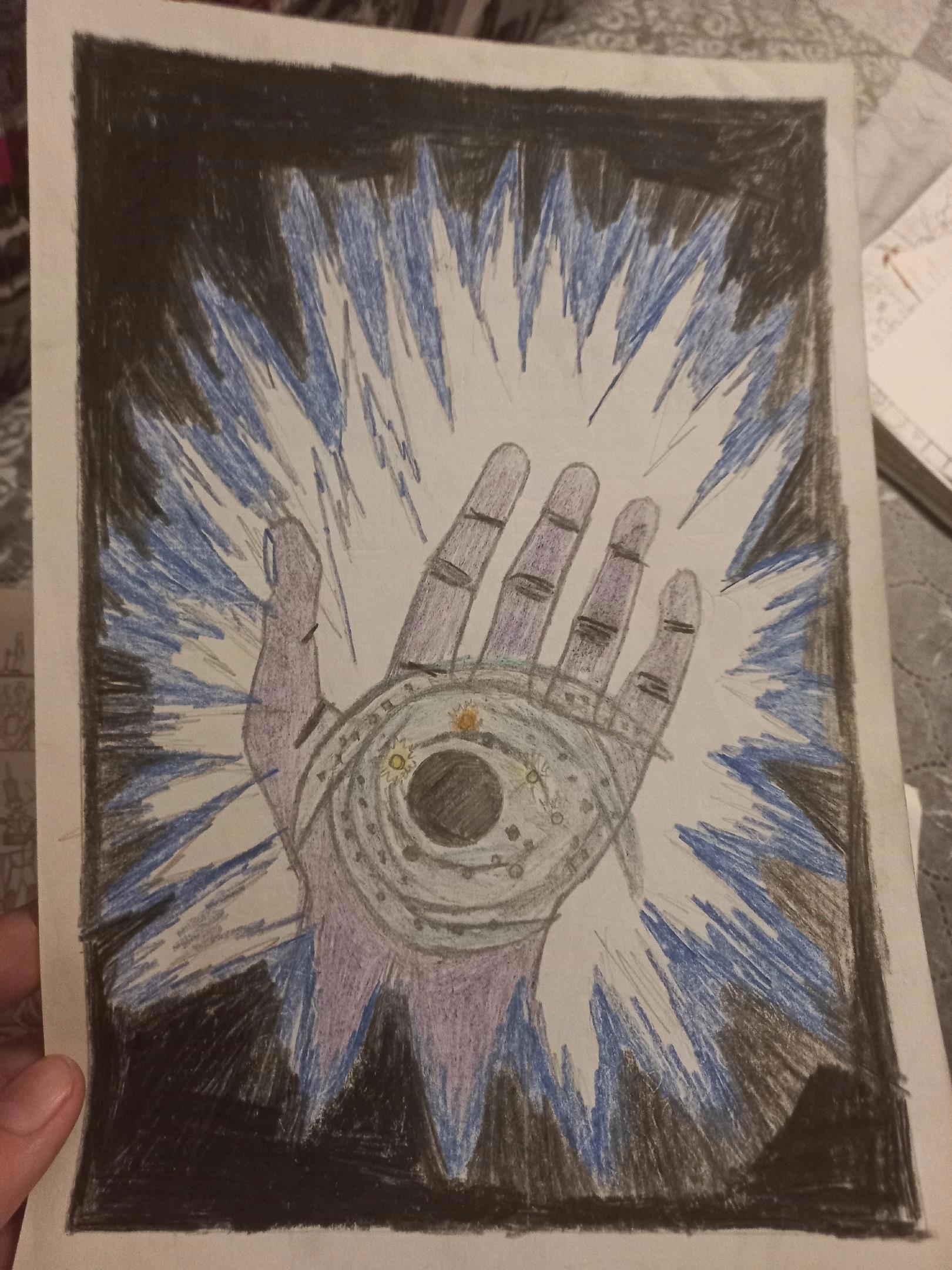 Вот это типа первый фрейм, где показано рождение Млечного Пути. Для него, насколько я помню, я обвёл левую руку с обратной стороны.