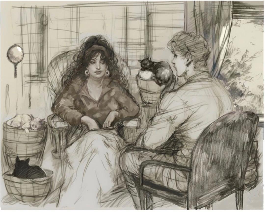 Гадалку звали Оглядало, она оказалась женщиной неопределенного возраста в разноцветном тряпье и являла собой прямо хрестоматийный образ гадалки, какими их показывают в кино или рисуют в книгах: с подвязанными красным платком кудрявыми черными волосами, большими серьгами, усиками над верхней губой, смуглой кожей и густо подведенными черным карандашом глазами. Я по привычке хотел исследовать ее золотые нити, но сдержался: вдруг женщина все же обладает способностями выше средних и почувствует мое вмешательство?