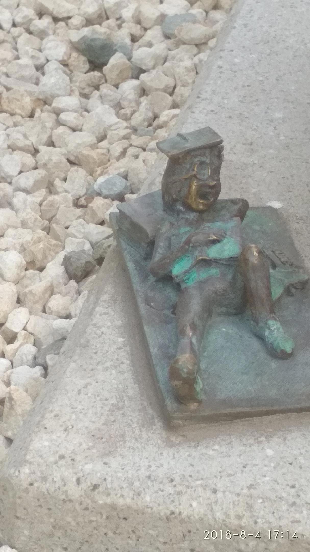 Под небольшим кустиком разлёгся студент. Судя по тому как он зевает и не торопится на учёбу - это вечный студент. Но фигурка забавна.