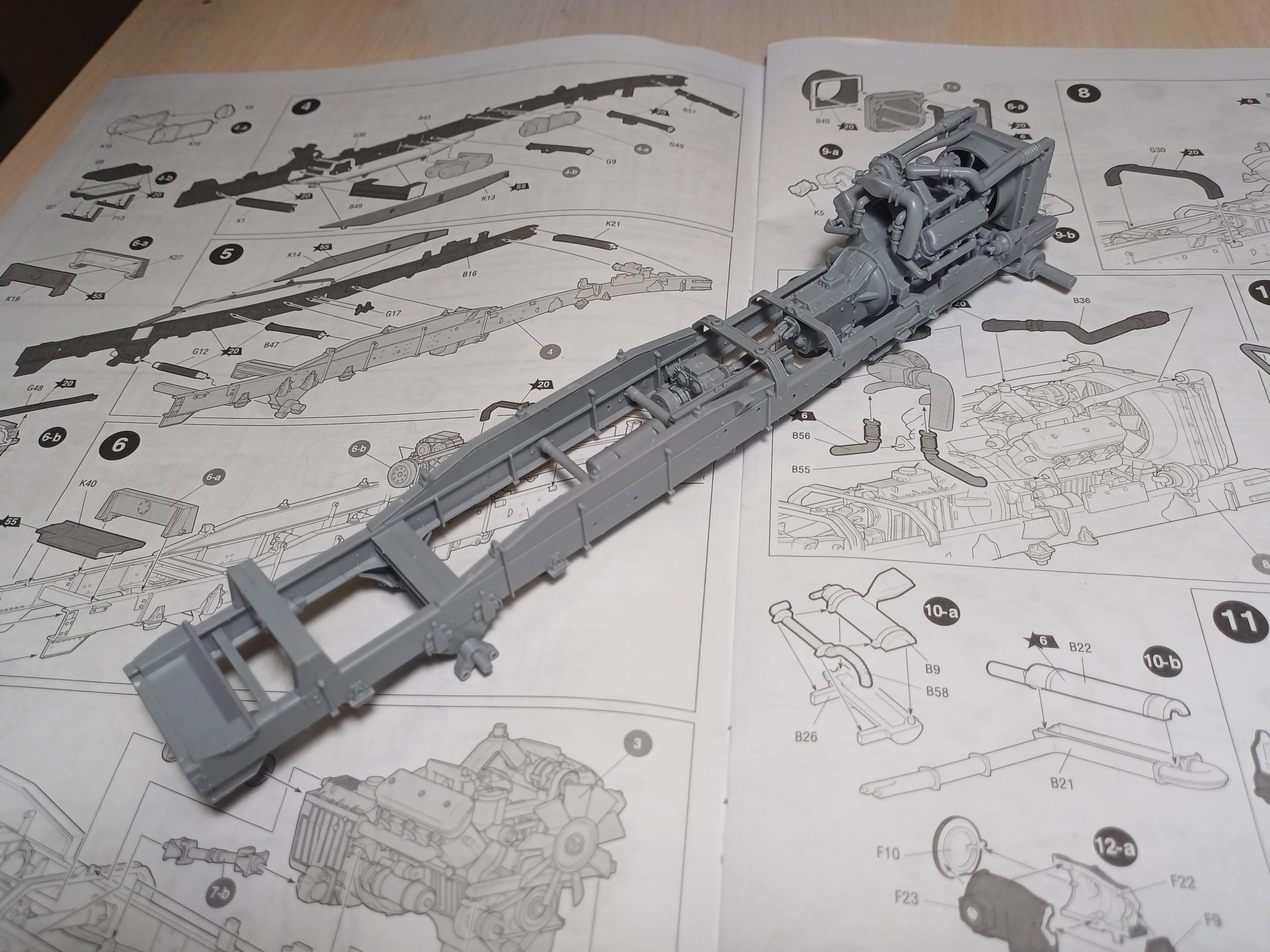 3. Начал собирать звездовский Урал. Адский ад по сравнению с ICMовским, но зато сходится великолепно. Решил двигатель красить в черный вместе с рамой, под аэрограф - иначе это еще надолго :)