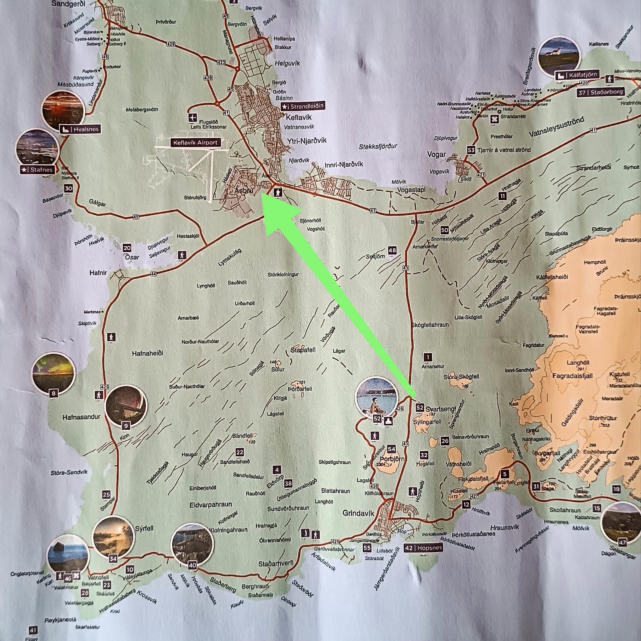 Сейчас покажу, где в ночное время (когда не ездила туда-сюда) обитала героиня, это полуостров Рейкьянес: