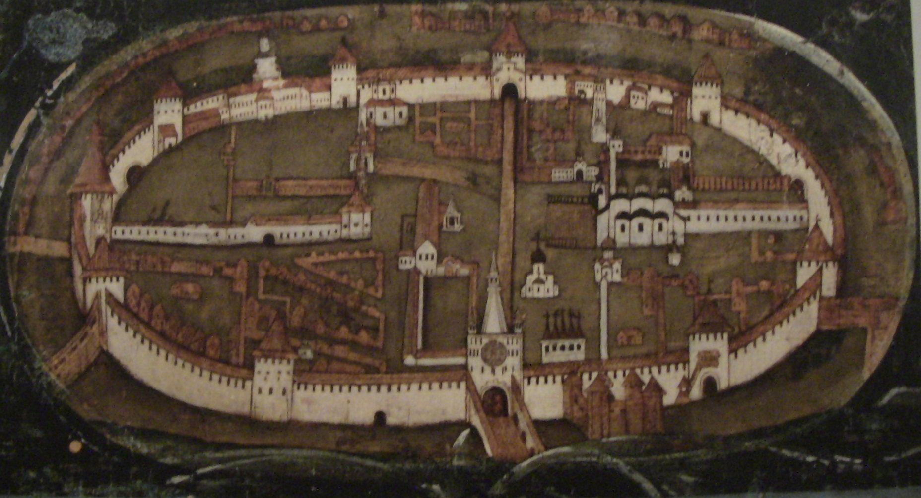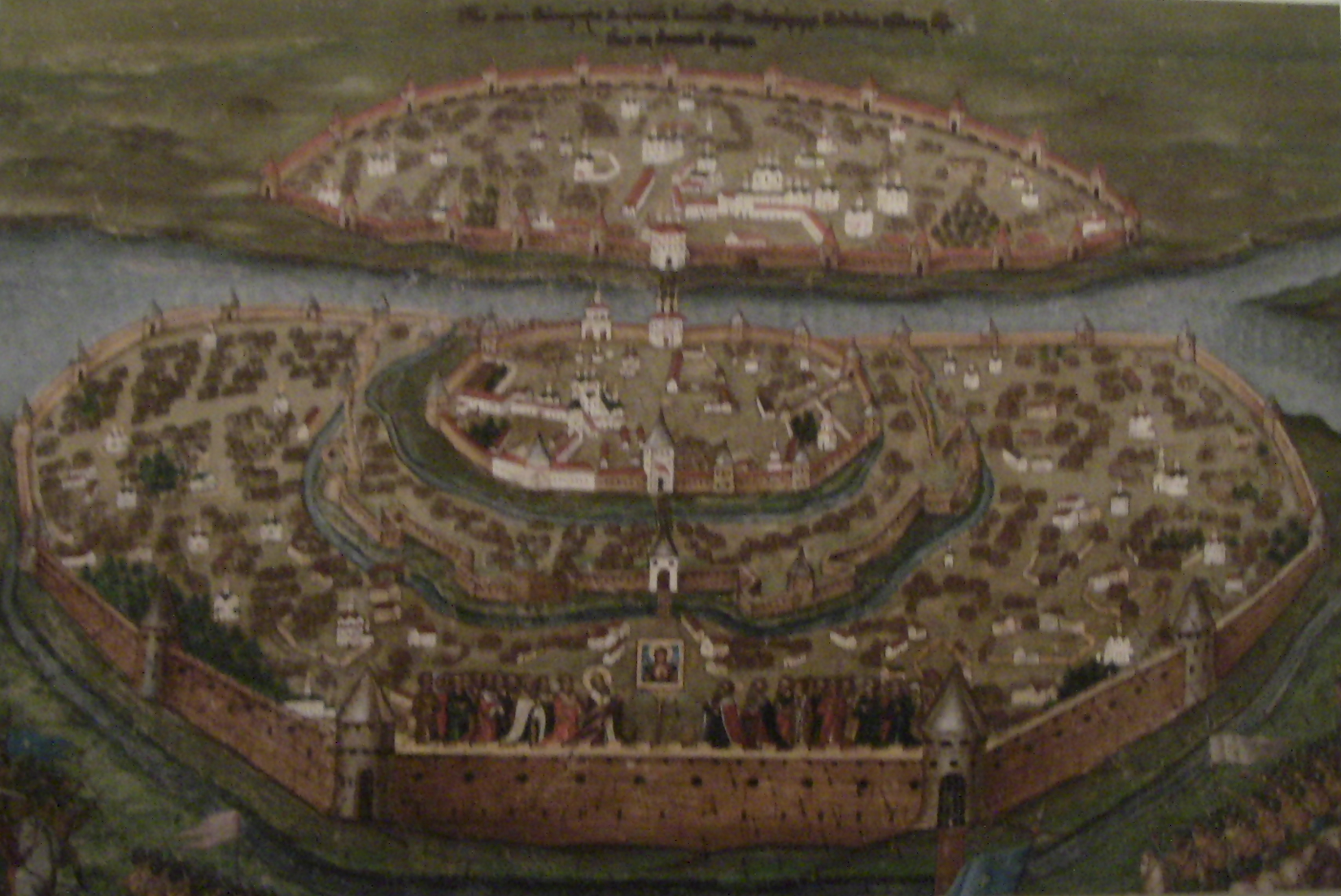 Вид древнего Новгорода. Деталь иконы Чудо от иконы богоматери знамения с видом древнего Новгорода\