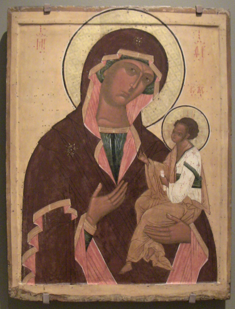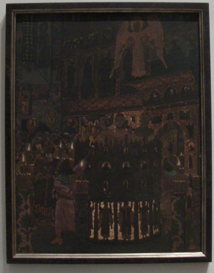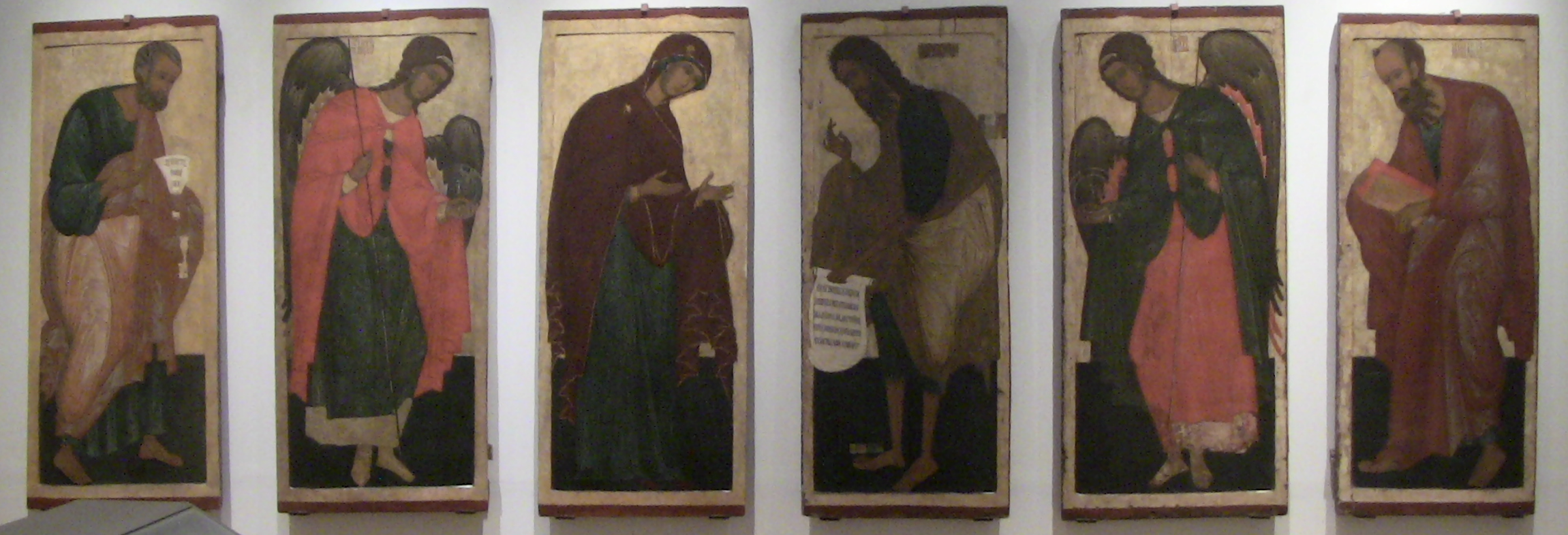 Когда мы побывали на выставке Верещагина, неожиданно выяснилось, что по тем же билетам можно посетить еще и выставку новгородской иконы и мы конечно же воспользовались таким случаем.