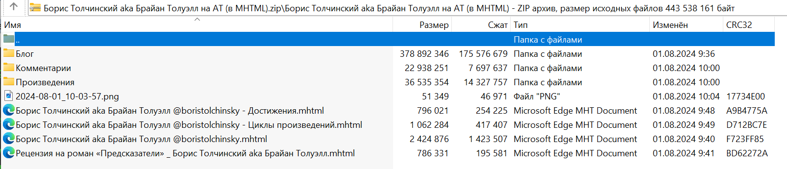 Вот, например, как выглядело содержание архива по состоянию на 1 августа, когда был сделан этот скрин: