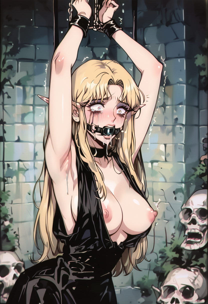 Спецом заюзал Lora, которая дает закос под старые ретро-анимехи. Ну и хоррорная составляющая тут в основном на лице эльфийки. Вот эмоции ужаса у ней вышли прямо вообще...