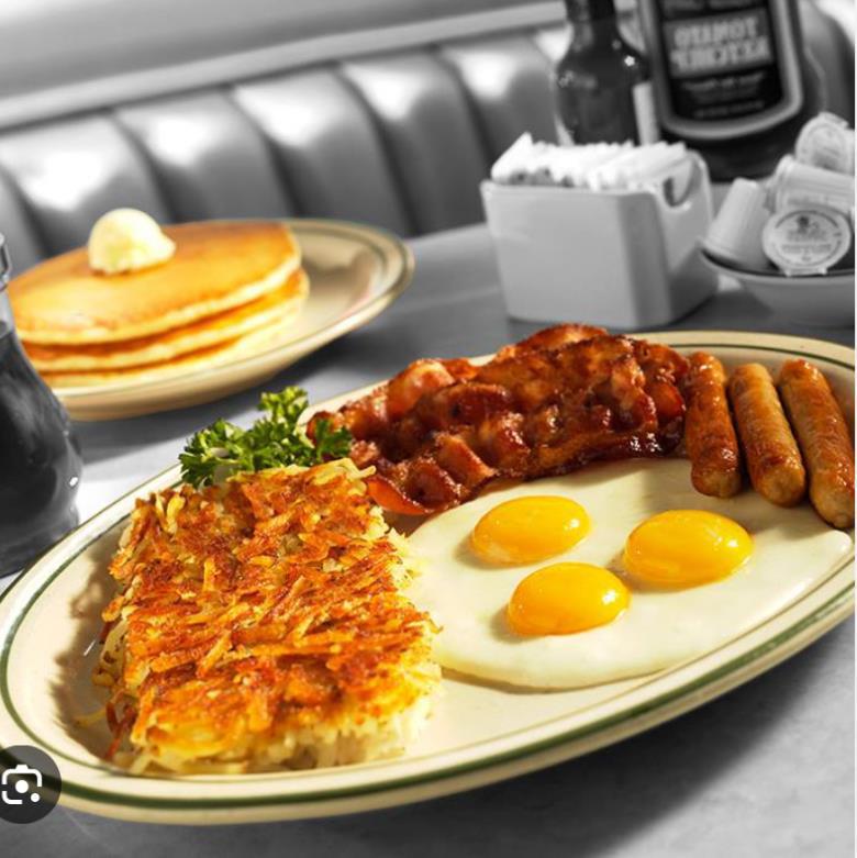 Глазунью, тосты и блины,