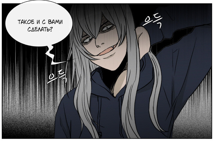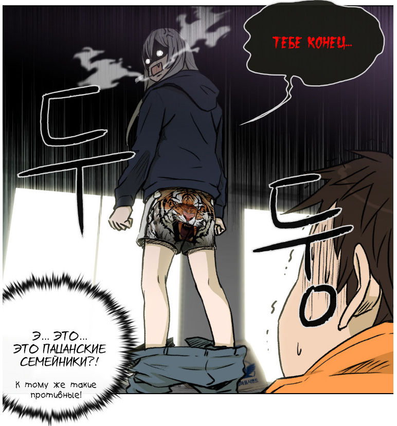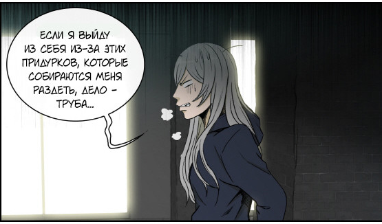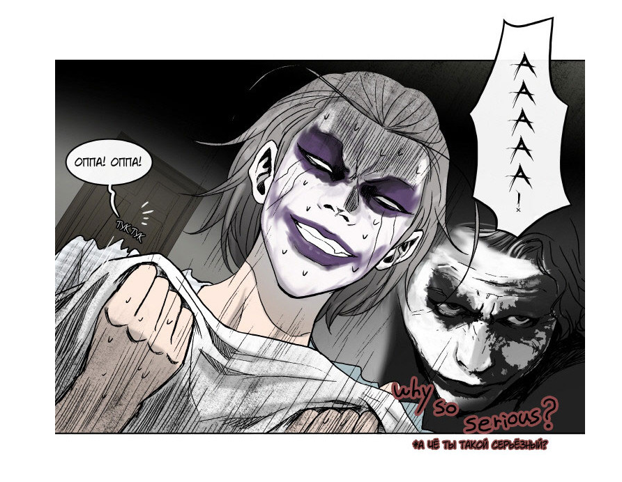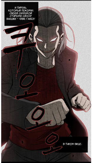 И вот, второй подобный сюжет! Познакомимся же с главным героем. А герой у нас - настоящий гопник почти Бэтмен, тёмный рыцарь с большим сердцем и благородной душой, ад и погибель всех местных отбросов, побеждающий их с помощью невероятной силы, кулака и доброго слова. Нет-нет, про "доброе слово" - это я пошутила))) Герой настолько упорот и ужасен, что даже визуально это подчёркивается в каждой картинке торчащим у него клычком. Что, какбэ, намекает))