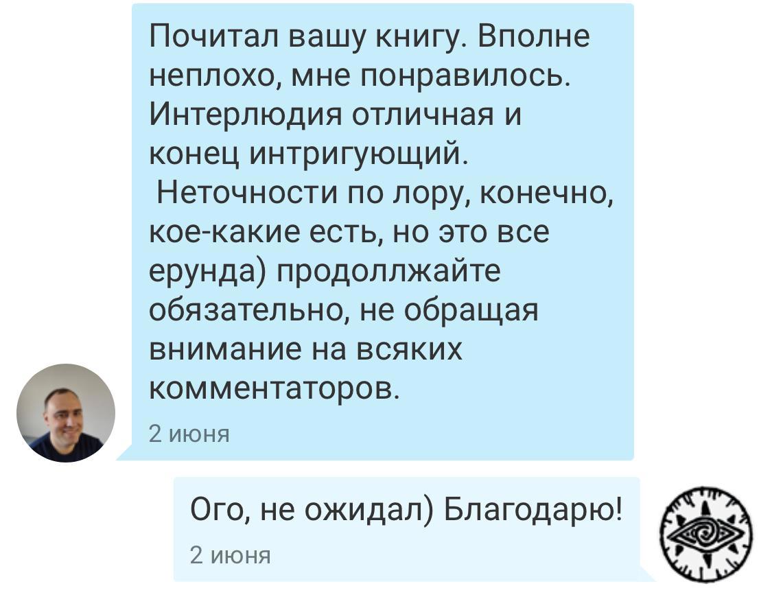 Если ты до сих пор не понял, мой читатель, то скажу чуть проще и развёрнутее: в последних главах я заметил нечто неприятное. Как жирная лоснящаяся муха, усевшаяся на вкуснейший яблочный пирог, оно напрягало меня и тянуло плечи вниз. При взгляде на буквы, складывающиеся в слова, я могу сказать одно — в последних главах я написал конкретный проходняк. Может, такой грех был за мной всегда — не знаю, хотя автор оригинального цикла меня похвалил (вот пруфы, неверящие)!