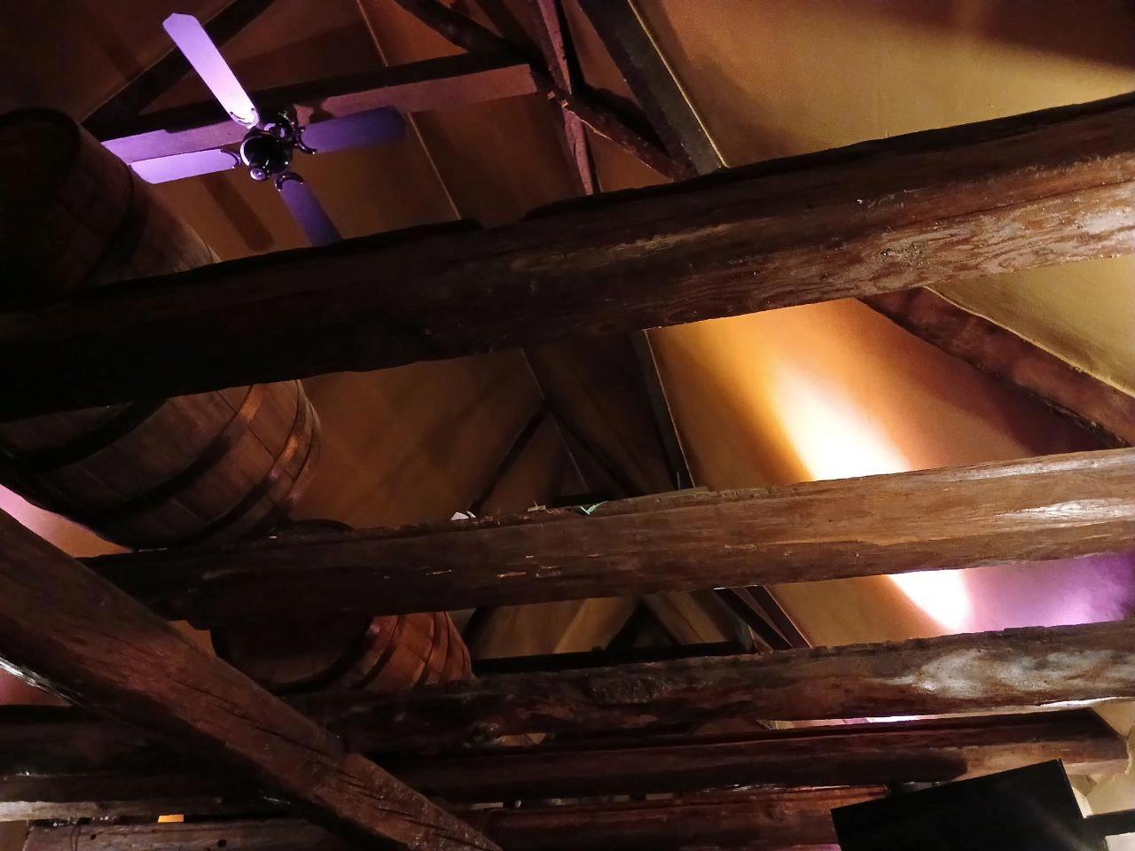 Балки перекрытий потолка, конечно, не 14-го века, но тоже не новые.