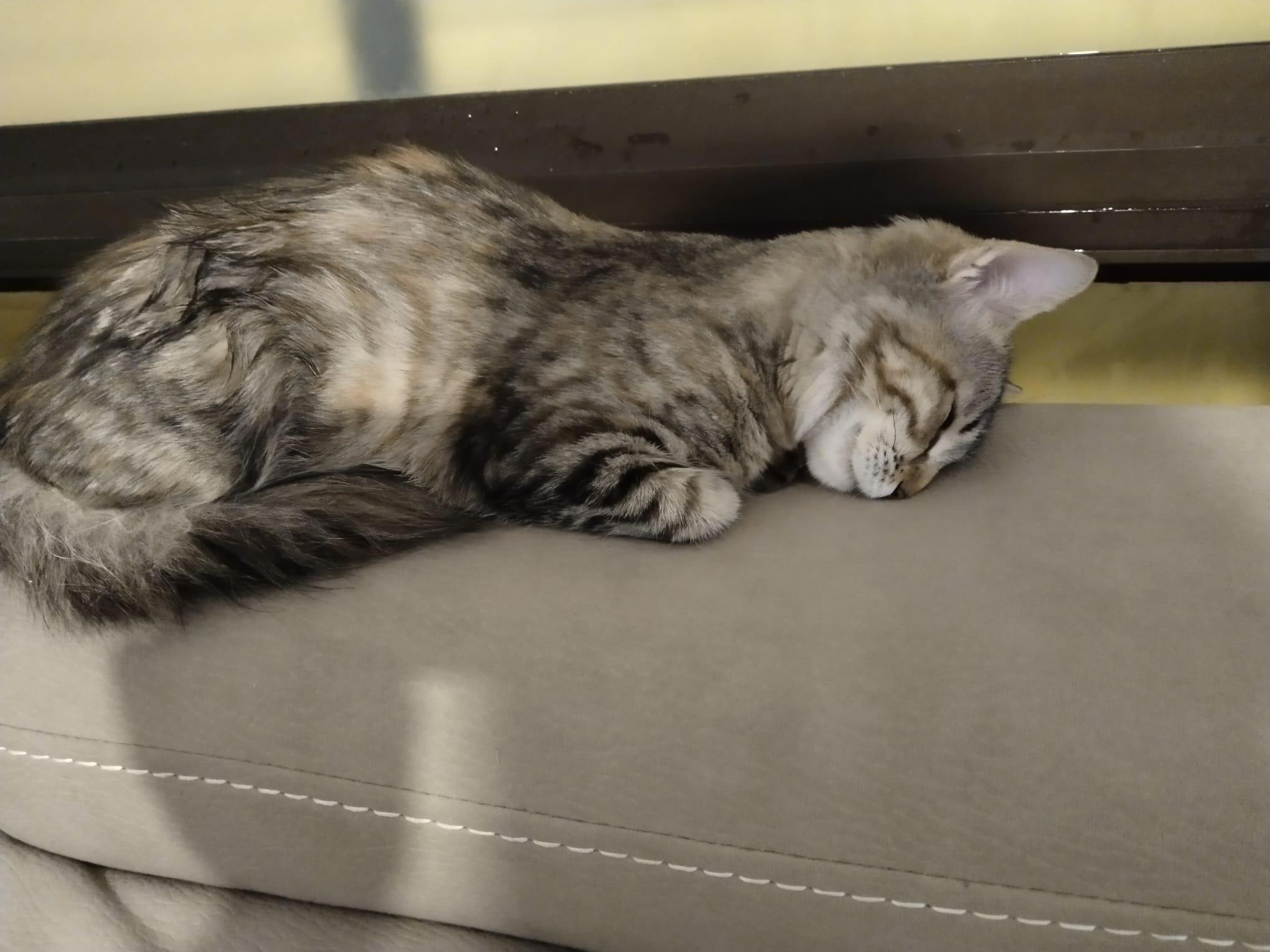 Поначалу она боялась всех, но сейчас стала настоящим членом нашей семьи. За год Манюня выросла и превратилась в невероятно красивую кошку. Она очень ласковая и умеет найти подход к каждому.