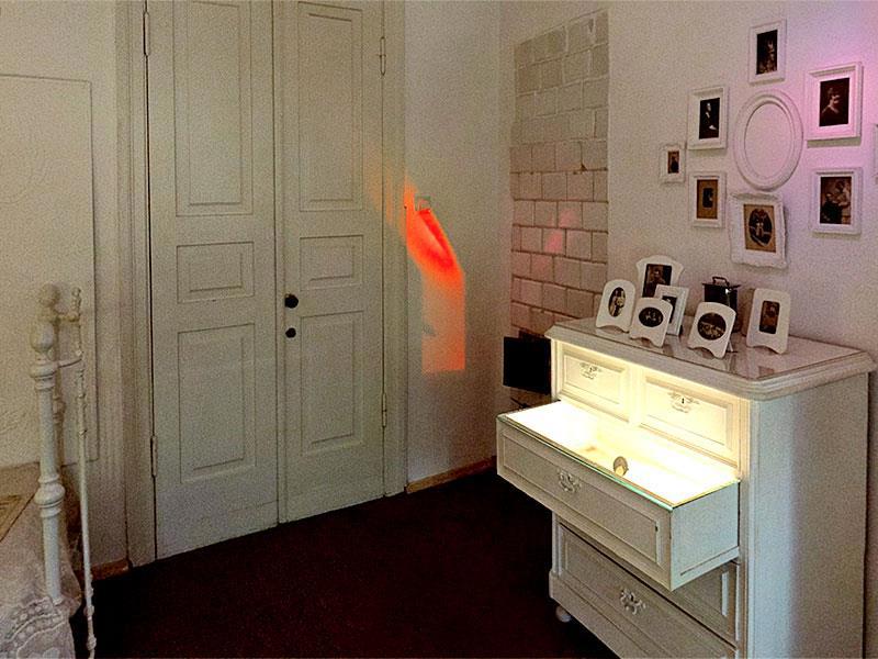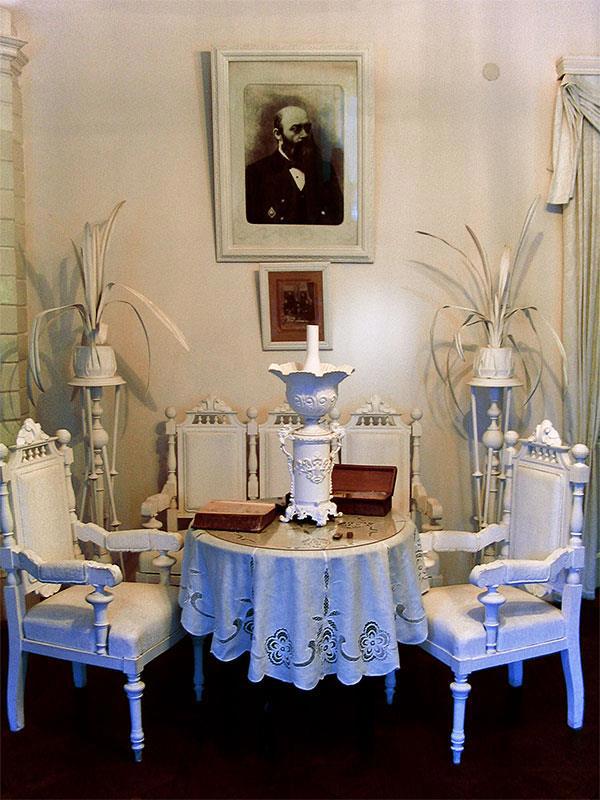 Поднявшись по лестнице на второй этаж, мы через переднюю попадём в турбинскую квартиру и увидим два стоящих рядышком стула – один обыкновенный, разве что очень старый, а второй – абсолютно такой же, но совершенно белый, будто гипсовый. Вот и получается, что в квартире сегодня ощущаешь присутствие сразу обеих семей: Булгаковы живут среди настоящих вещей, а Турбины обитают в снежно-белом мире.