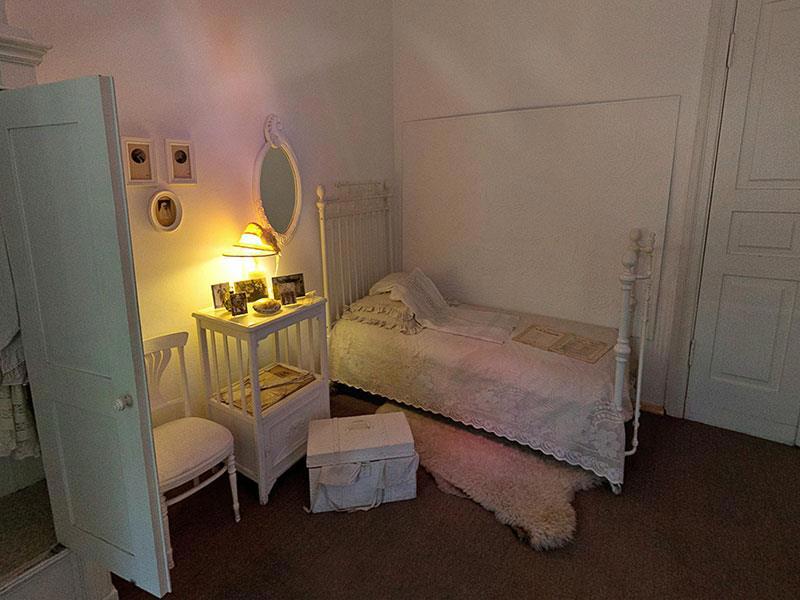 Слева на этом фото можно заметить угол печи, расположенной в углу гостиной и греющей сразу три смежные комнаты. Это – тот самый Саардам, на изразцы которого гостями и хозяевами дома были нанесены знаменитые надписи. Только надписи эти были не тут, в гостиной, а с другой стороны печи – с того ее боку, который выходит в столовую за стенкой (мы еще дойдем туда). А оставшийся бок треугольного изразцового столба выходит в комнату Елены. Давайте выйдем туда и мы.
