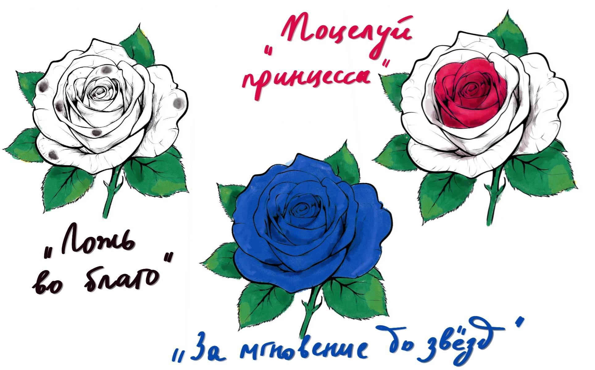 Розы оказались синими: того самого идеально-синего цвета, в который окрашивается вечернее небо. Когда закат уже отгорел, а тьма ещё не наступила — и звёзды, следовательно, ещё не зажглись на небосклоне, но зажгутся вот-вот.