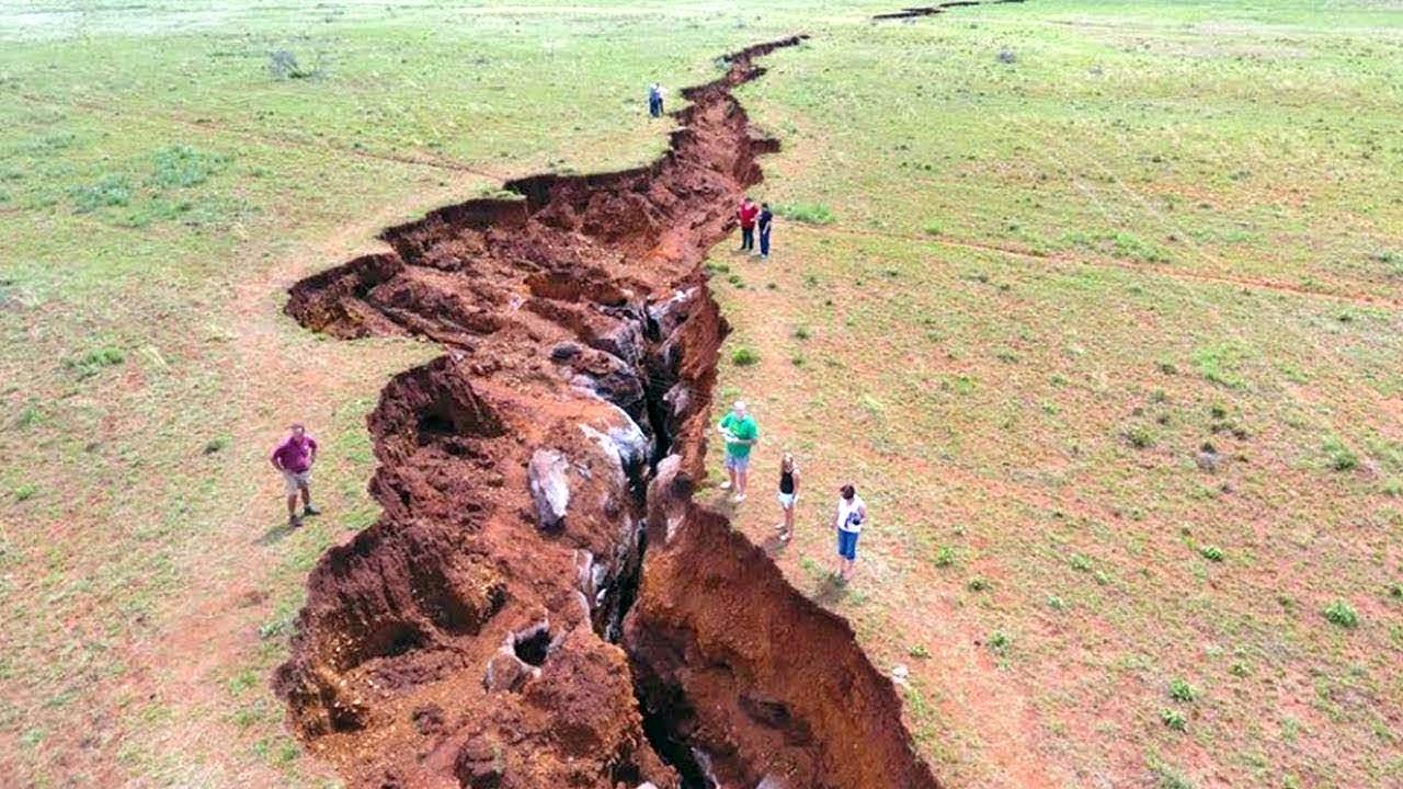 Земля трескается под ногами, и всё равно мелкие политические дрязги, выступления «крупных политических игроков», имена которых не будет знать уже следующее поколение, вызывает у толпы куда больше внимания. Причём дела именно так и обстоят. Вот фотка – это воспетый Голливудом «разлом Сан Андреас»: