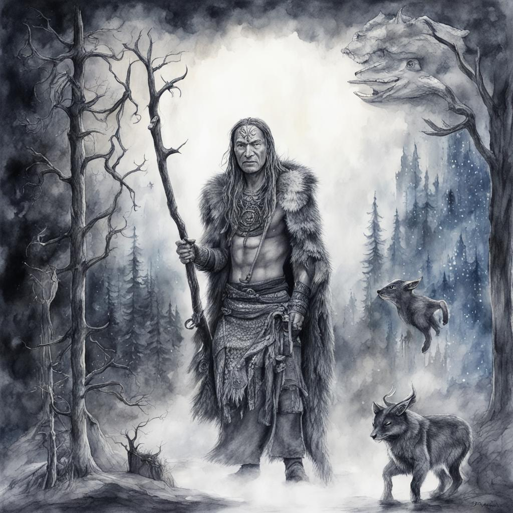 Заодно покажу красивых несколько артов из нейросети - не по тексту, а просто в тему шаманизма: