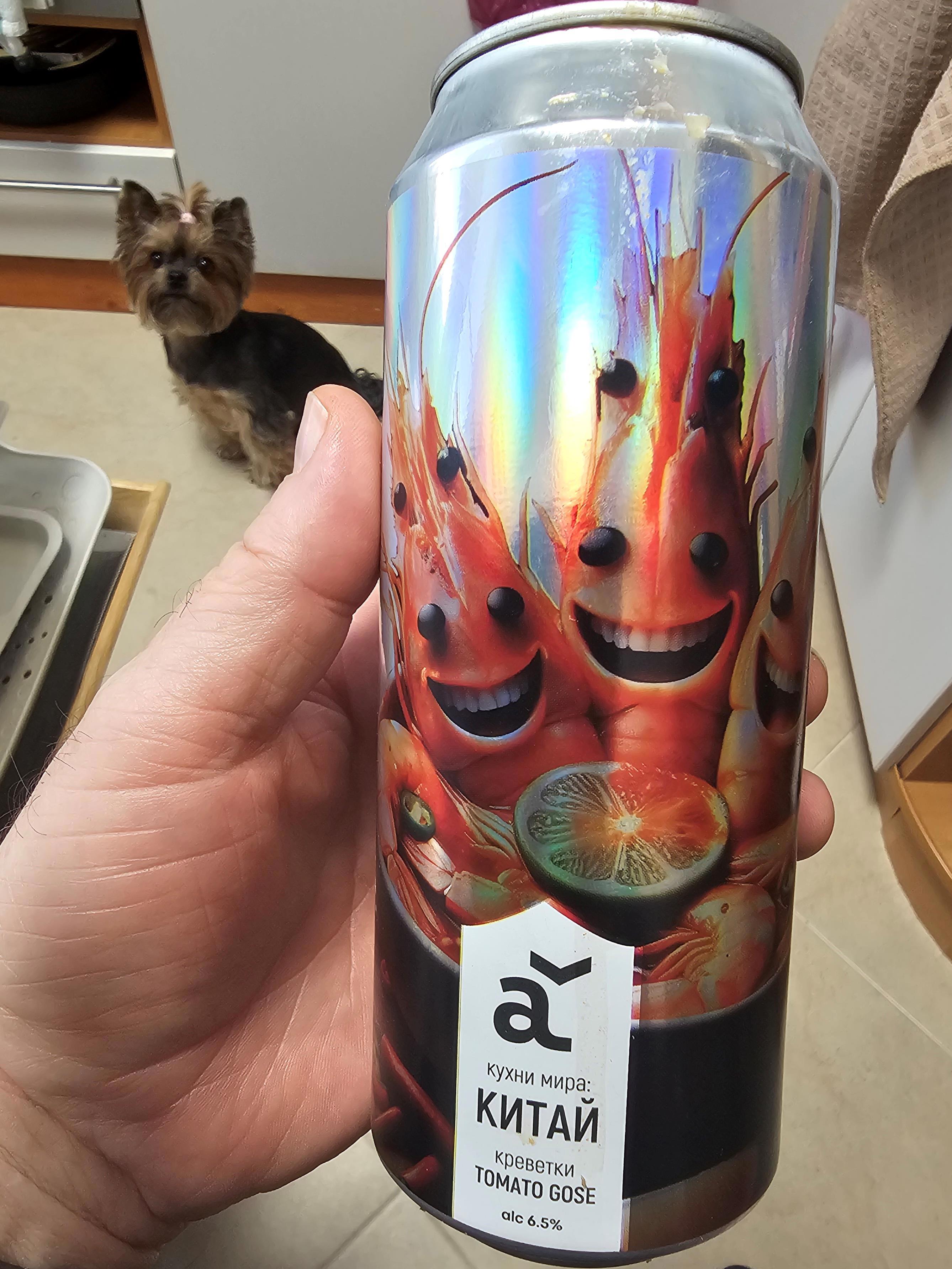 Томатное гозе с креветками на фоне Санта-Даселины (в быту - Дася, 8 лет).