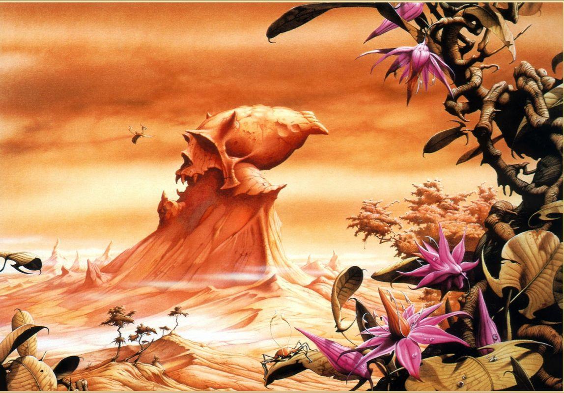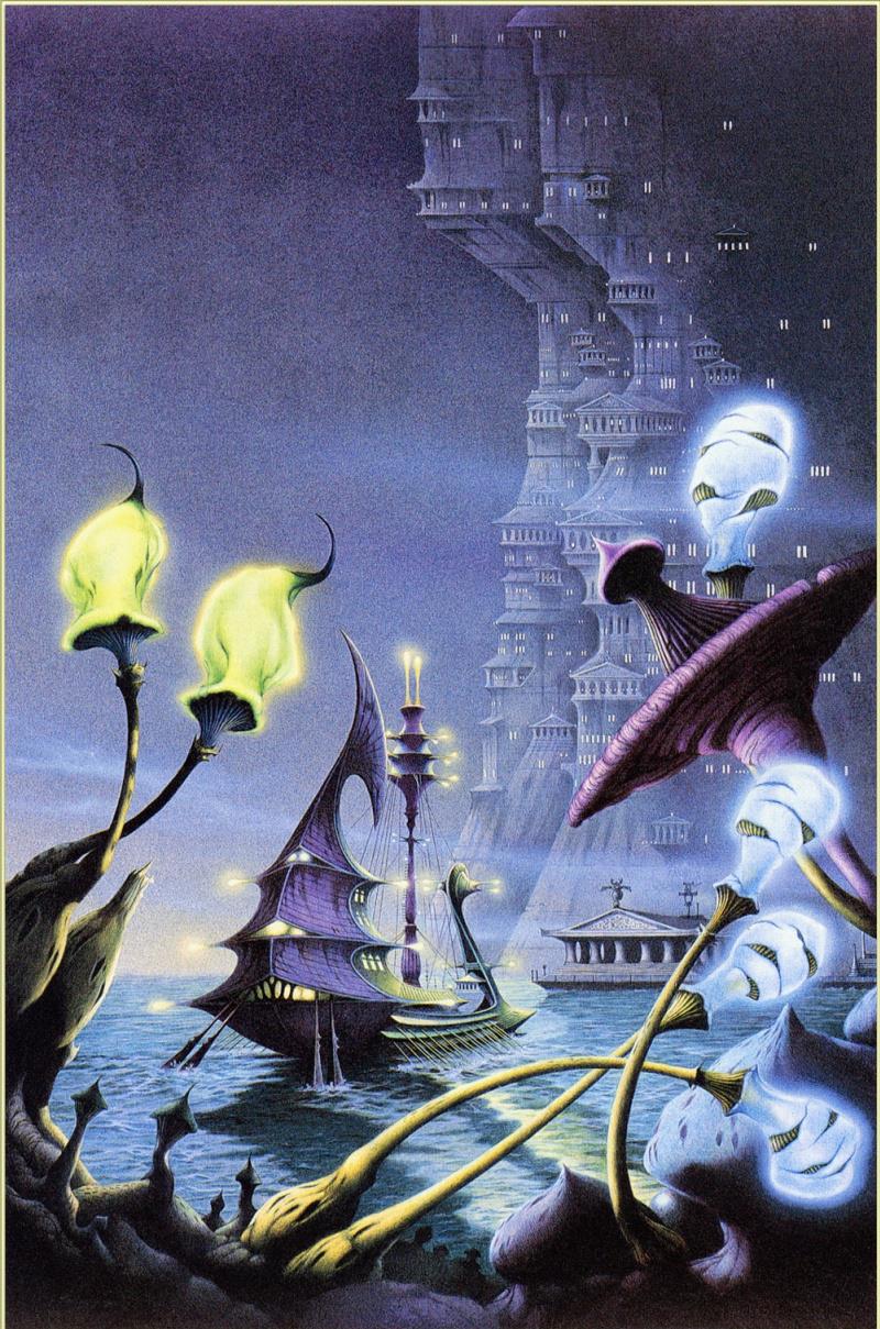 Если вдруг случается творческий затык, не думается, не пишется, "ключ фантазии иссяк - не бьёт его струя", как писал когда-то Кэрролл - есть недурное свойство быстро вернуть себя в форму. Не книги - чужие тексты, тем сильнее, чем они лучше, переключают на чужую волну, действуют слишком резко - а иллюстрации. Иллюстрации, нарисованные фантастические миры, созданные коллегой-художником, раскочегаривают воображение без побочных эффектов. Художник, умеющий точно и ярко изобразить галлюцинацию, грёзу или сон - на вес золота. Мне кажется, это даже более редкий дар, чем дар писателя-фантаста божьей милостью.