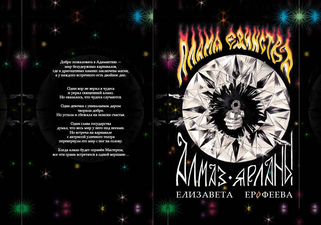 Автор: Елизавета ЕрофееваТоварищи, на днях я планирую печатать тираж «Алмаза Ярланы». Это будет книга в твёрдой обложке. Сейчас я как раз занимаюсь тем, что доделываю обложку, недоделанную могу показать :)