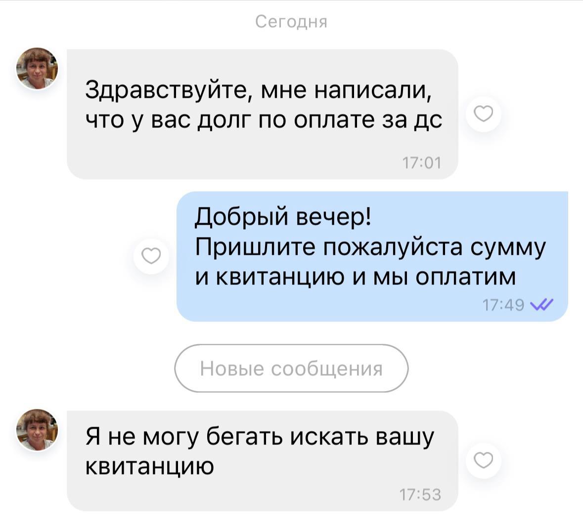 То есть, я вежливо попросила прислать мне квитанцию, чтобы оплатить, и вуаля — сразу же столкнулась с хамством.