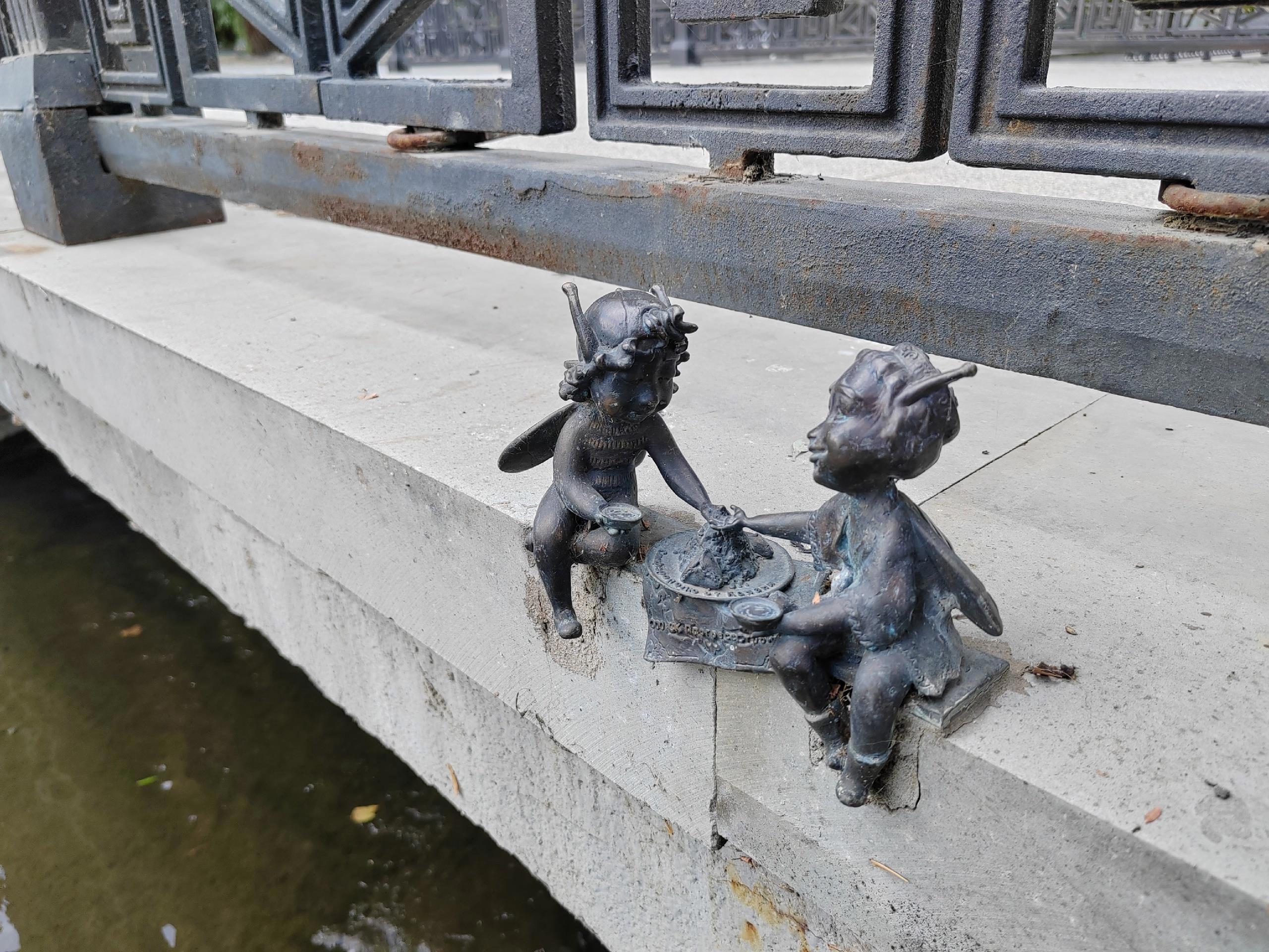 А напротив, на другом краешке моста разместилась группа друзей, которые вкусно кушают плов и беседую о жизни. Очаровательные малыши так заняты своей беседой, что не замечают ничего вокруг себя.
