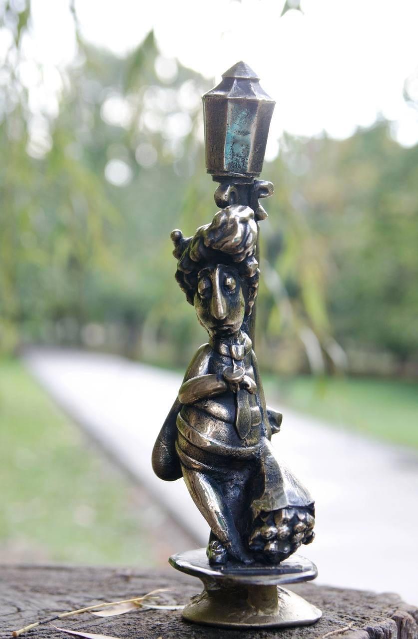 Дальше идёт смешная фигурка молодого человека, который ждёт девушку. А та то ли опаздывает, то ли вообще не придёт. В Симферополе его ласково называют Ждун... Самое интересное, что стоит он очень далеко от центра, практически возле самой объездной. Там не так давно поставили маленькую деревянную церковь. Вокруг разбит очаровательный парк с детской площадкой, стоянкой для машин и множеством скамеечек, где можно просто посидеть. Видимо настоятель этой церкви очень умный человек, данное место пользуется популярностью. Так вот, под одной из скамеек как раз и стоит наш печальный Влюблённый.