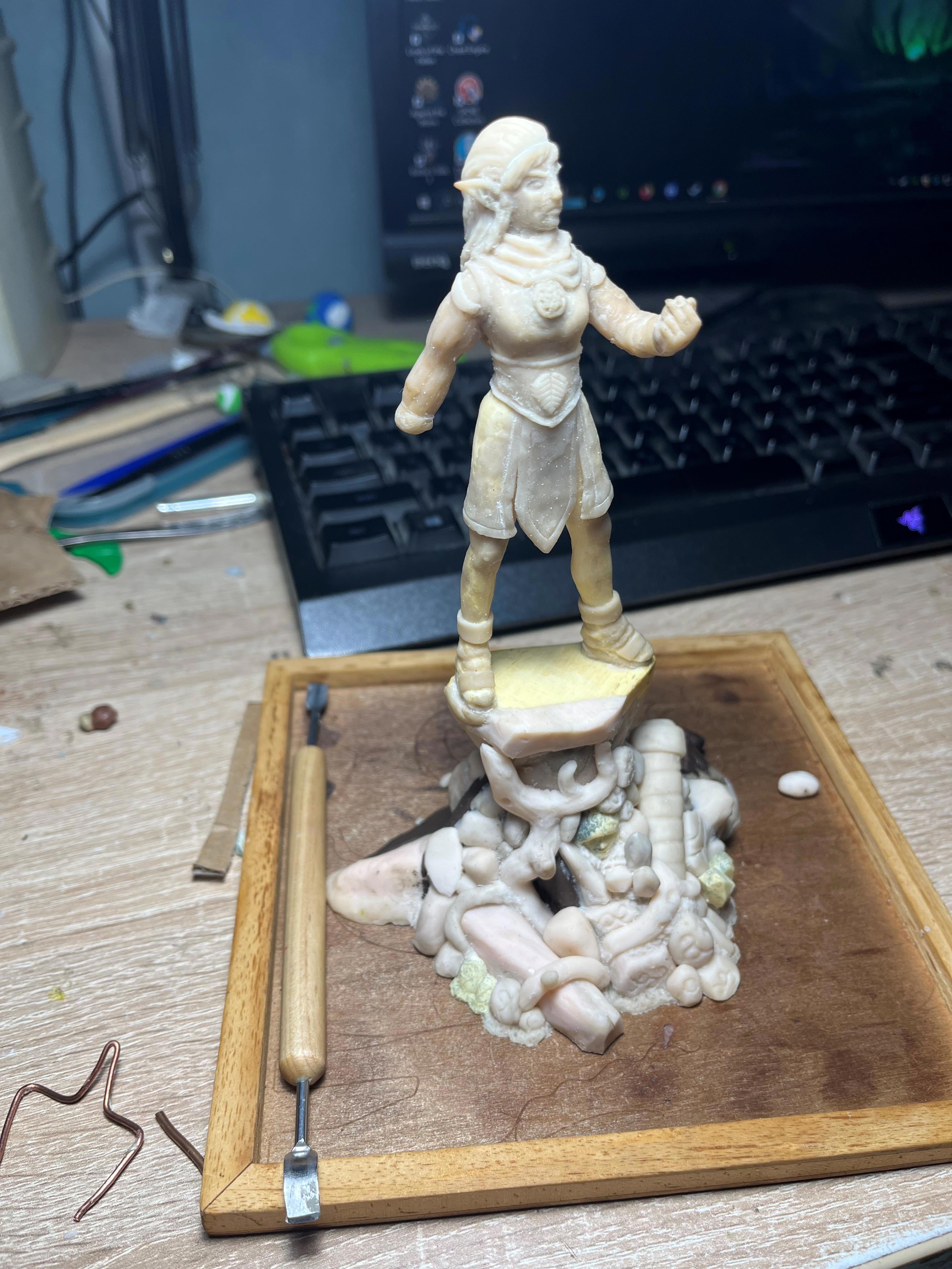 Работа из полимерной глины и её подставка будет стыковаться с подставкой Духа Песков, образуя целостную композицию