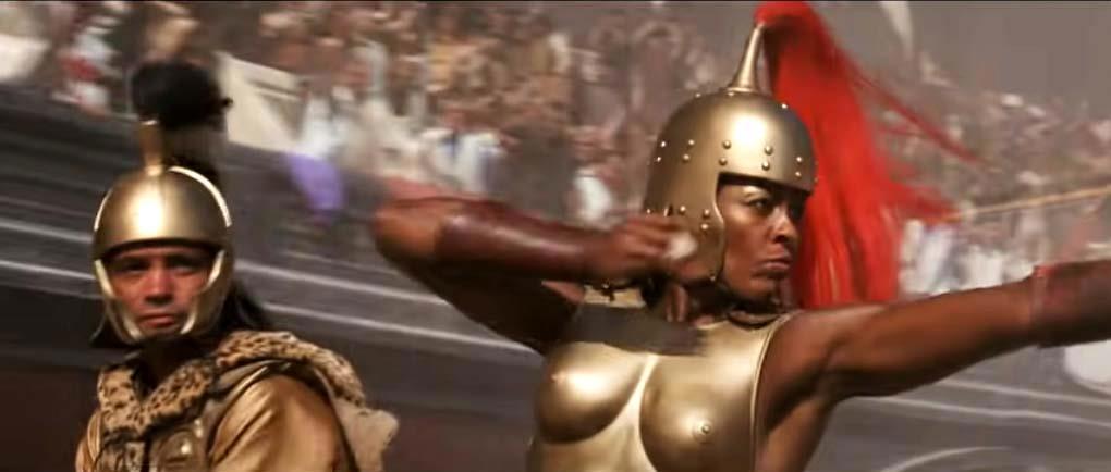 Бой, как и весь фильм, поставлен зрелищно, и на все эти странности можно было бы не обращать внимания. Но все же победа семнадцати мужиков над пятью женщинами, пусть даже на колесницах, не комильфо, однако.