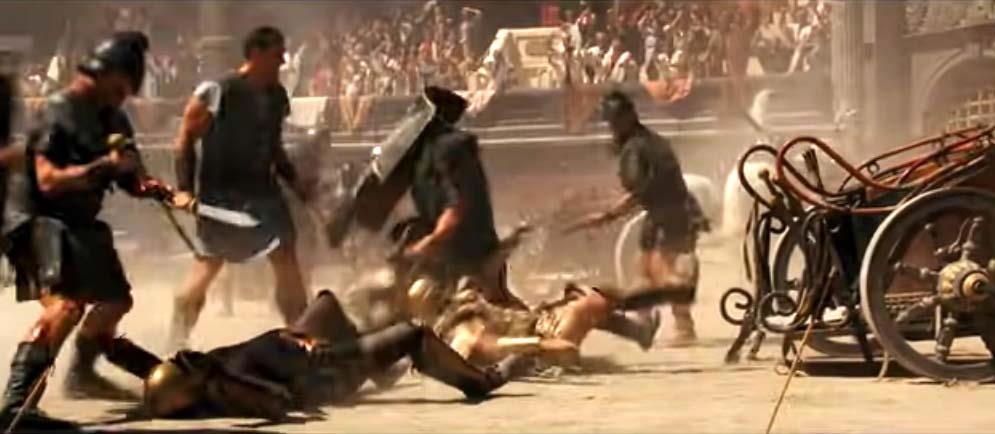 По прошествии более чем двух десятков лет со времени выхода фильма на экран есть желание вернуться к одному из его кульминационных эпизодов – «Бою против колесниц», где главный герой Максимус проявляет свои командные и боевые качества.