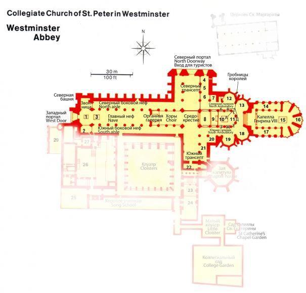 А Капелла Генриха VII - это вообще отдельная огромная пристройка к церкви! (На плане ниже в ней обозначена гробница под номером 15)