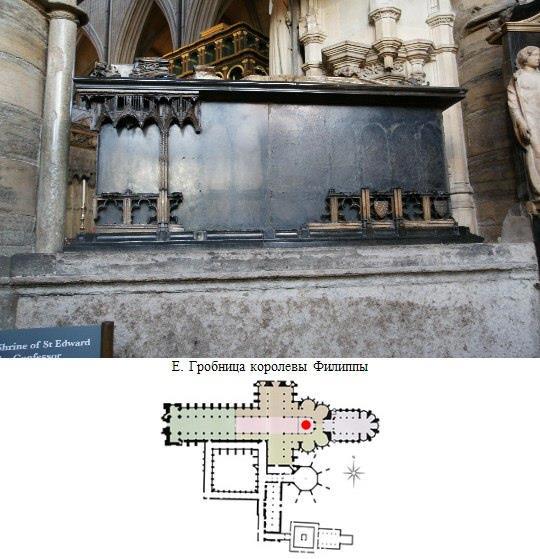 Дальше — надгробие королевы Филиппы, жены Эдуарда III. Умерла в 1369. Эдуард III потратил около 3000 фунтов стерлингов на ее гробницу. Она сильно повреждена.