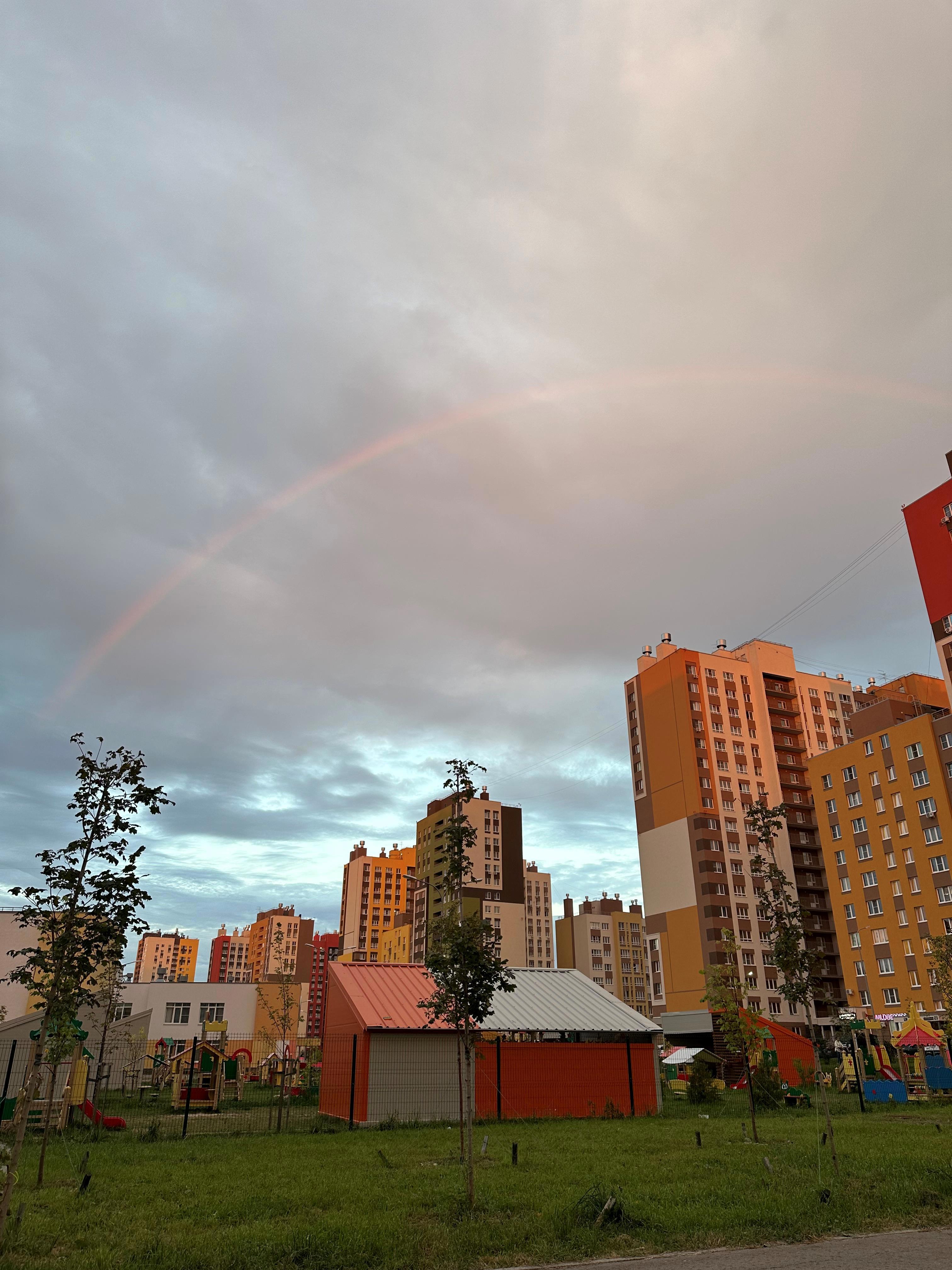Вчера был очень красивый и яркий вечер. Прекрасный закат, теплый дождик и радуга