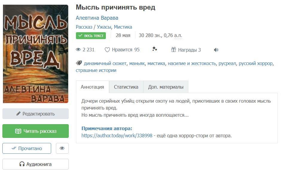 Пожалуйста! История о том, как дочери серийных убийц открыли свою охоту на людей, которые приютили в своих головах опасную мысль причинять вред, доступна как в буквенном варианте (ссылка), так и в отличном аудио (ссылка)!