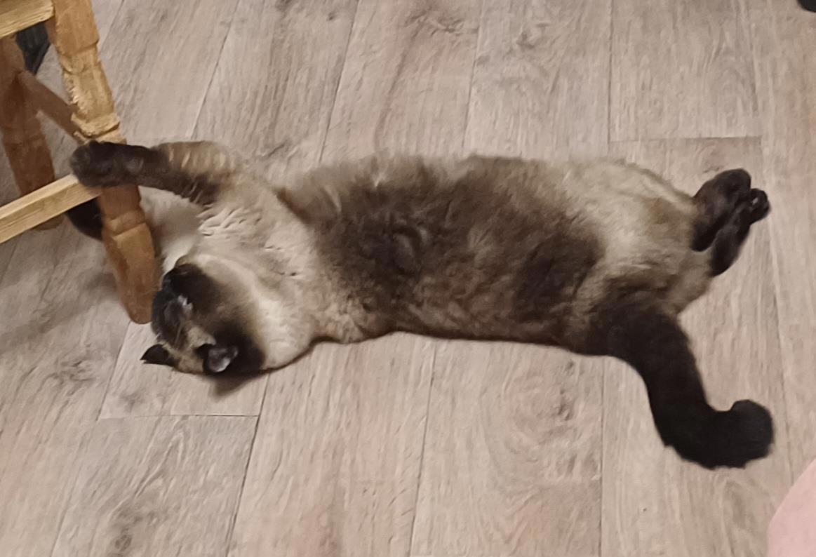 На этот раз - пытающийся точить когти о табуретку прямо лёжа