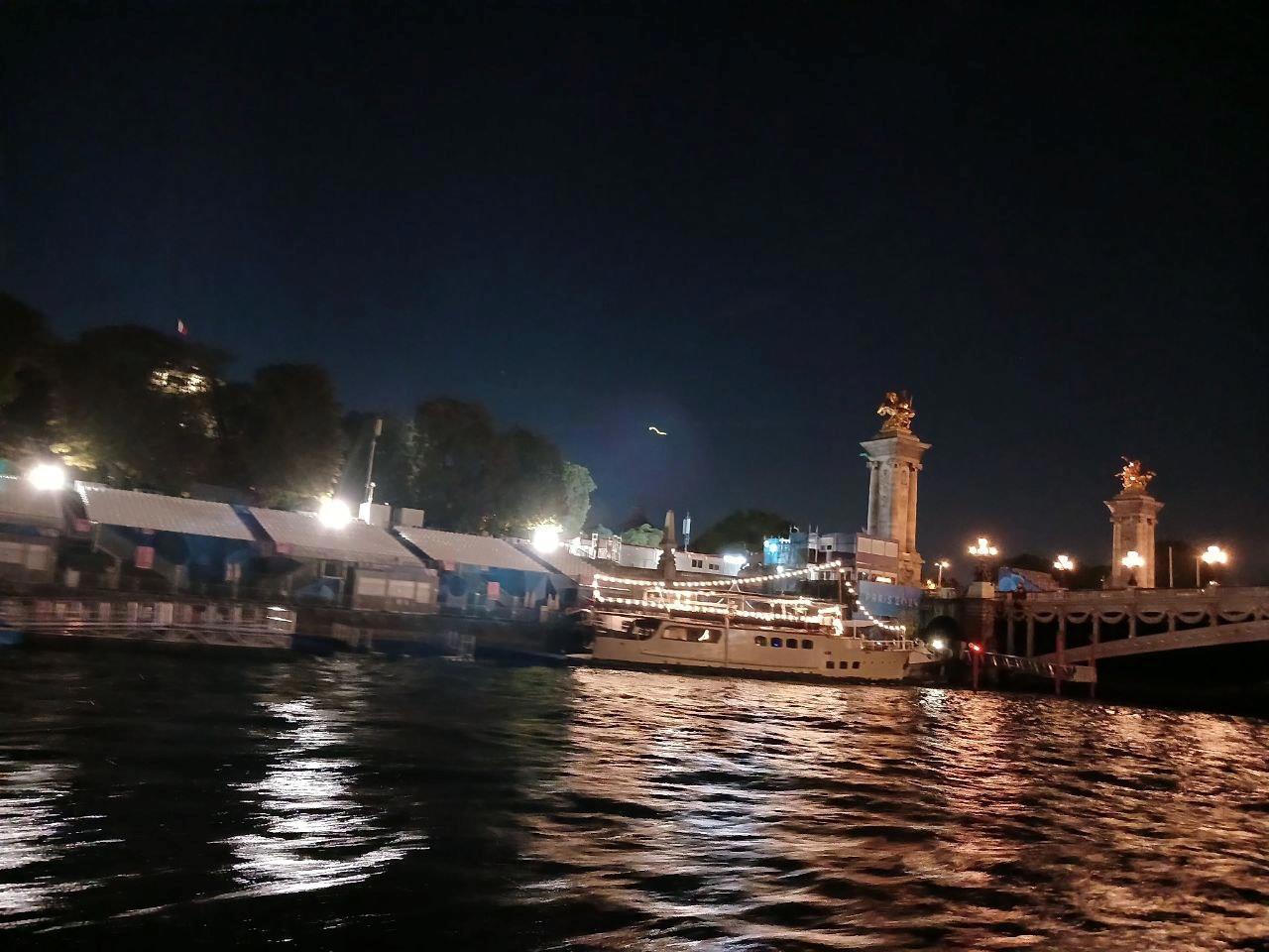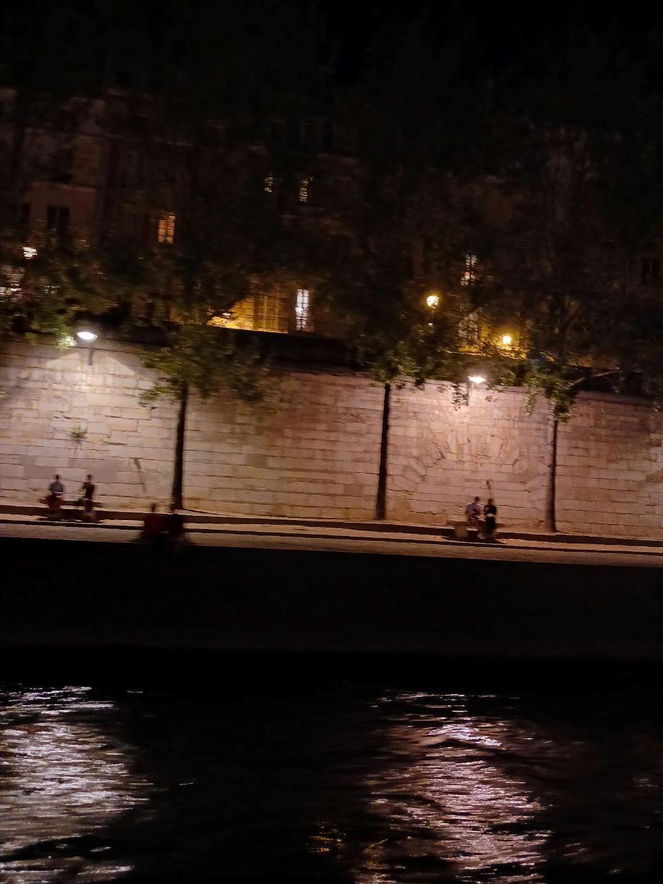 Приехали на закате, но простояли в очереди порядка двух часов, так что, когда мы оказались на "Бато", уже совсем стемнело.
