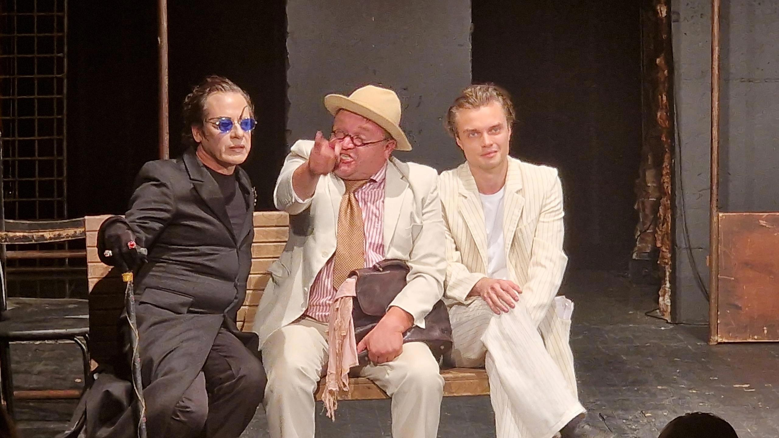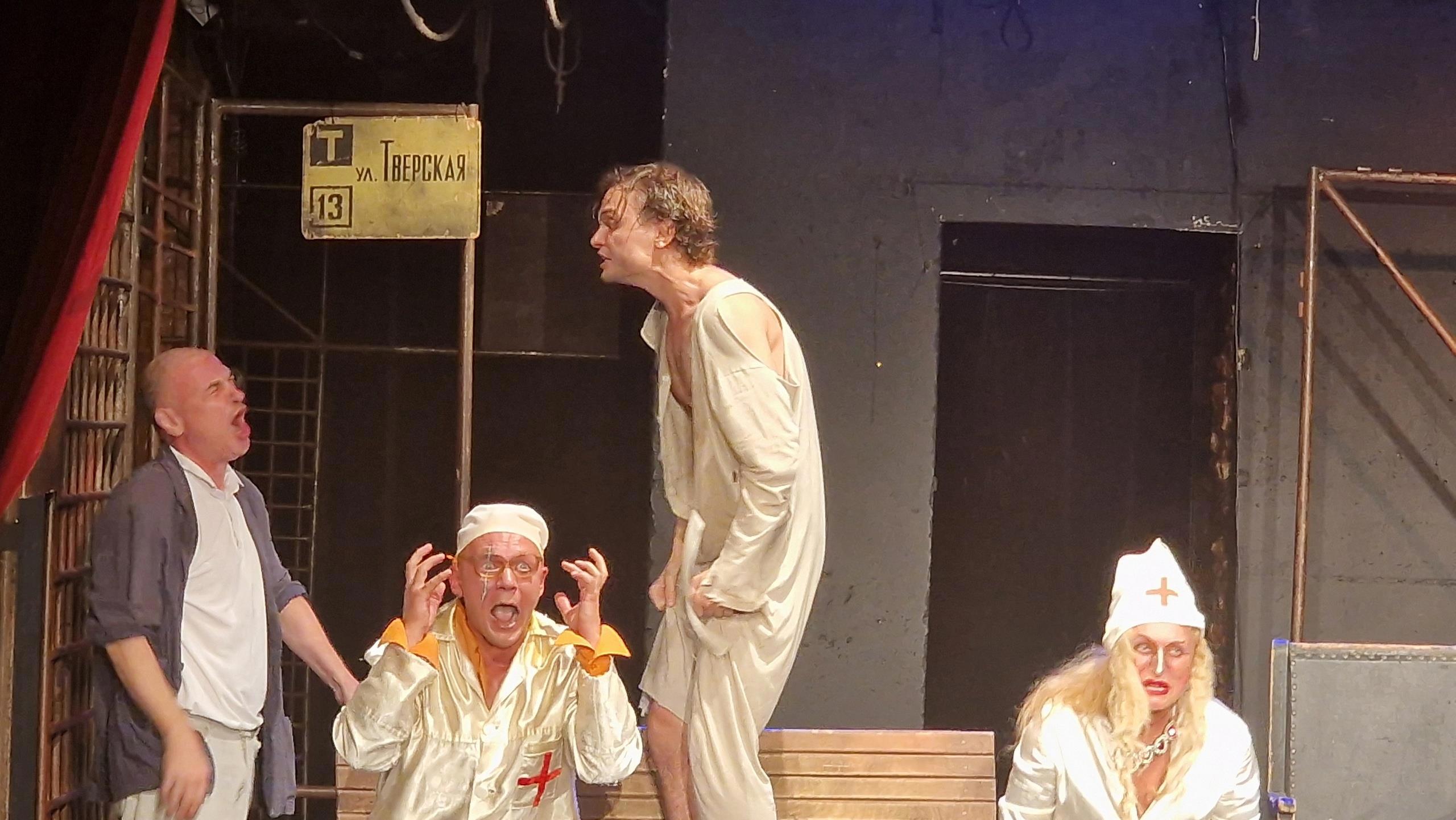 Сначала я удивилась, зачем свита такому Воланду? Но вскоре этот вопрос прояснился. Свита во главе с Воландом отыгрывает других героев романа, к примеру, команду Стравинского в клинике. Впрочем, не только свита и Воланд. Маргарита тоже произносит не свои слова (а вот не скажу кого, сходите посмотрите сами).
