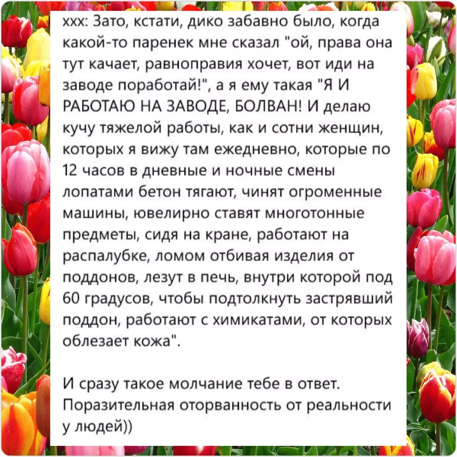Про тех товарищей, которые женщин ненавидят вообще, считают их всех тупыми, продажными и шлюхами, я молчу. Просто грустно, что их немало.