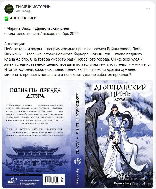 Уточнила у своего редактора. Да, можно анонсировать. Книжные блогеры разносят новость со страницы АСТ. Поэтому и я присоединяюсь.