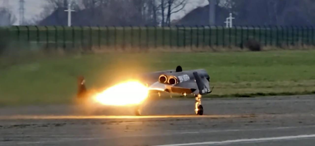 Моделька совершила несколько успешных полётов на четырёх обычных турбореактивных двигателях и было решено провести испытания с двигателем КВРД. Тут-то и произошла неприятность. Вот фотография первого взлёта этой действующей модели… попытки взлёта: