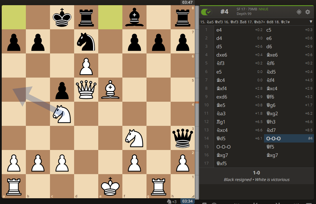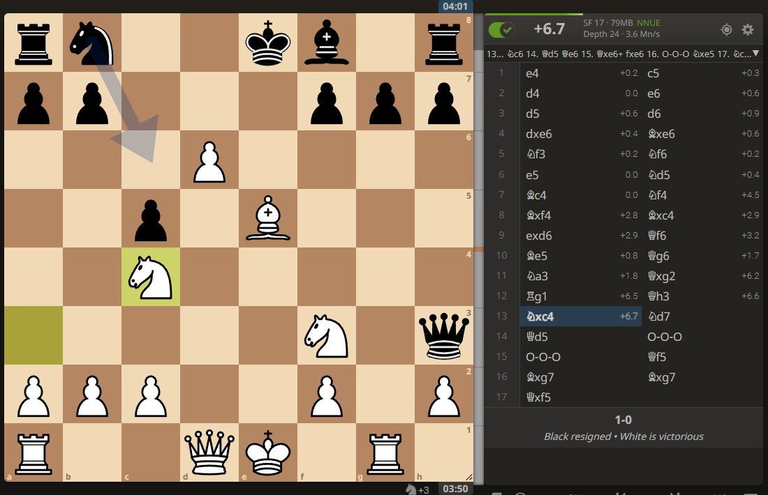 В результате этого форсированного варианта соперники пришли к позиции с преимуществом белых +2.9