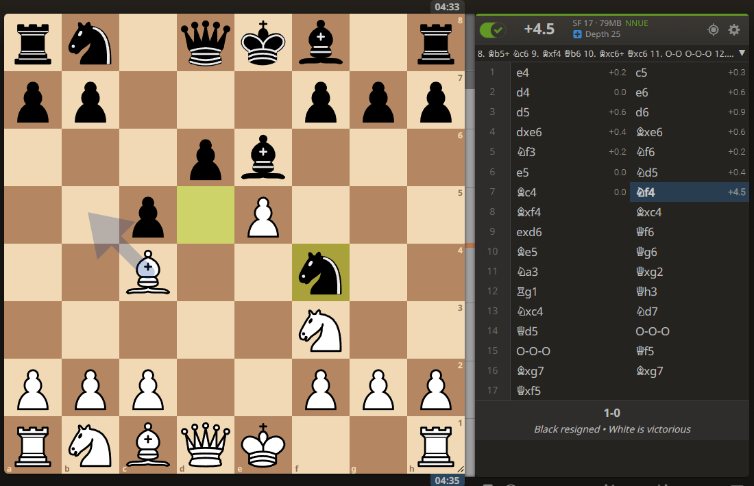 Сейчас анализатор советует черным сыграть 4. ... fe