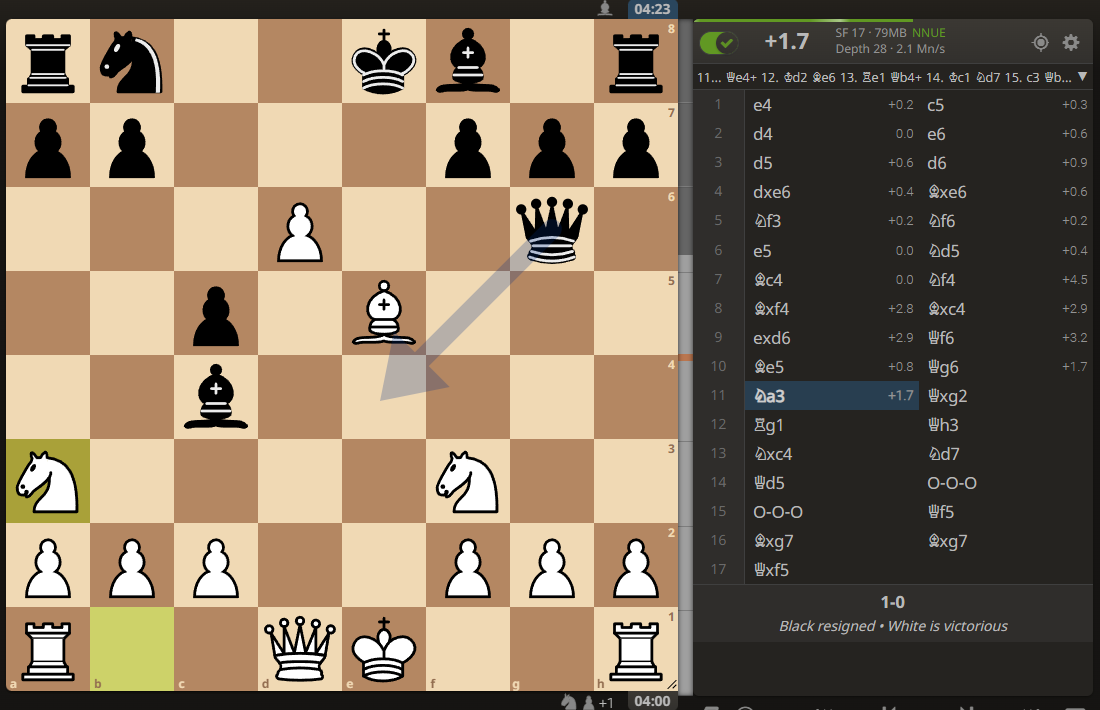 Вместо этого черный ферзь играет прямолинейно и допускает ошибку.