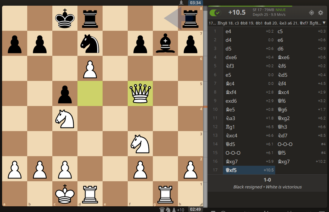 О качестве состоявшейся игры нам расскажет встроенный анализатор "SF 17 - 79MB NNUE".