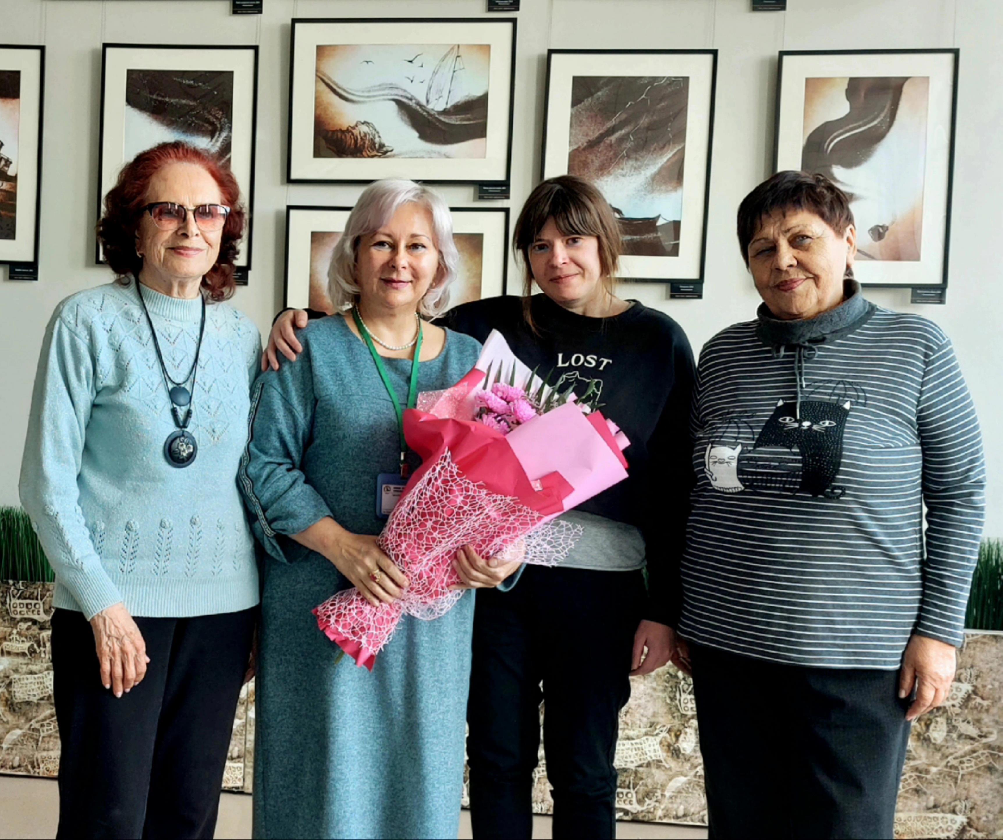 На фото слева направо: наш постоянный добрый зритель Алла Васильевна, я, молодой автор Юлия Кречетова, Алла Кузьминична Балабина - руководитель ЛИТО "Спектр"
