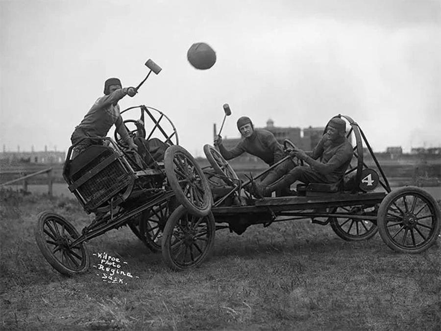 В начале XX века в мире существовало множество смертельно-опасных развлечений, которые тогда казались современным и прогрессивным спортом. Например, дуэли на настоящих пистолетах (стрелки-спортсмены открывшие счёт по жертвам как вам?) или гонки на мотоколесницах — это когда типо в псевдоримскую колесницу впрягали до четырех мотоциклов и те нарезали круги на бешеной скорости без всякой защиты пытаясь обогнать друг друга. Но всех переплюнуло автополо — все то же поло (командный вид спорта с мячом, в котором участники играют верхом на лошадях и перемещают мяч по полю с помощью специальной клюшки-молотка) только не на лошадях, а на автомобилях с вытекающими отсюда травмами, взрывами и пожарами, отлетевшими в толпу зрителей колесами (и другими запчастями), нередкими смертями.