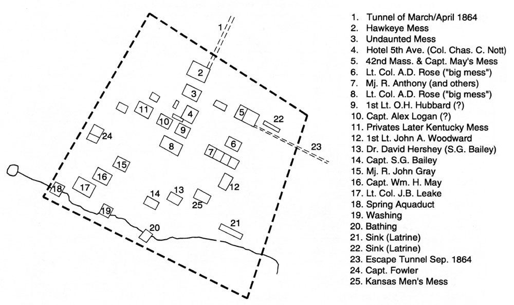 По здешним представлениям пять тысяч человек — это уже довольно большой город, а делать жителям в нем было нечего, разве что благоустраивать свои жилища. К концу войны лагерь Форд некоторые остряки обзывали «вигвамный мегаполис». Одним из развлечений было копание подкопов из лагеря. Пленные выкапывали ход, убегали, стража ловила и водворяла пленных обратно, а ход закапывали подневольные негры. Не иначе как для развлечения в мае 1865 года из лагеря бежал и наш знакомый сержант Джеветт: пленных вот-вот должны были освободить, да большую часть уже и обменяли, в лагере осталось меньше двух тысяч человек, а охрана лагеря уже не сильно усердствовала, чтобы возвращать пленных обратно: им тоже домой хотелось побыстрее.