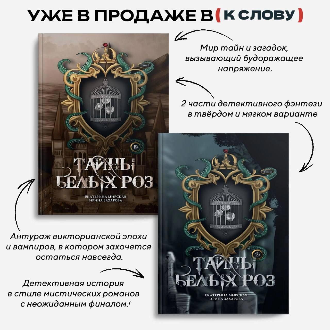 Ура! Ура! Ура! Вот мы и дождались этого момента, "Тайны белых роз" вышли на бумаге. Оформить предзаказ можно в телеграмм-боте издательства! Доступны мягкие и твердые обложки. При заказе двух томов сразу - мерч в подарок )