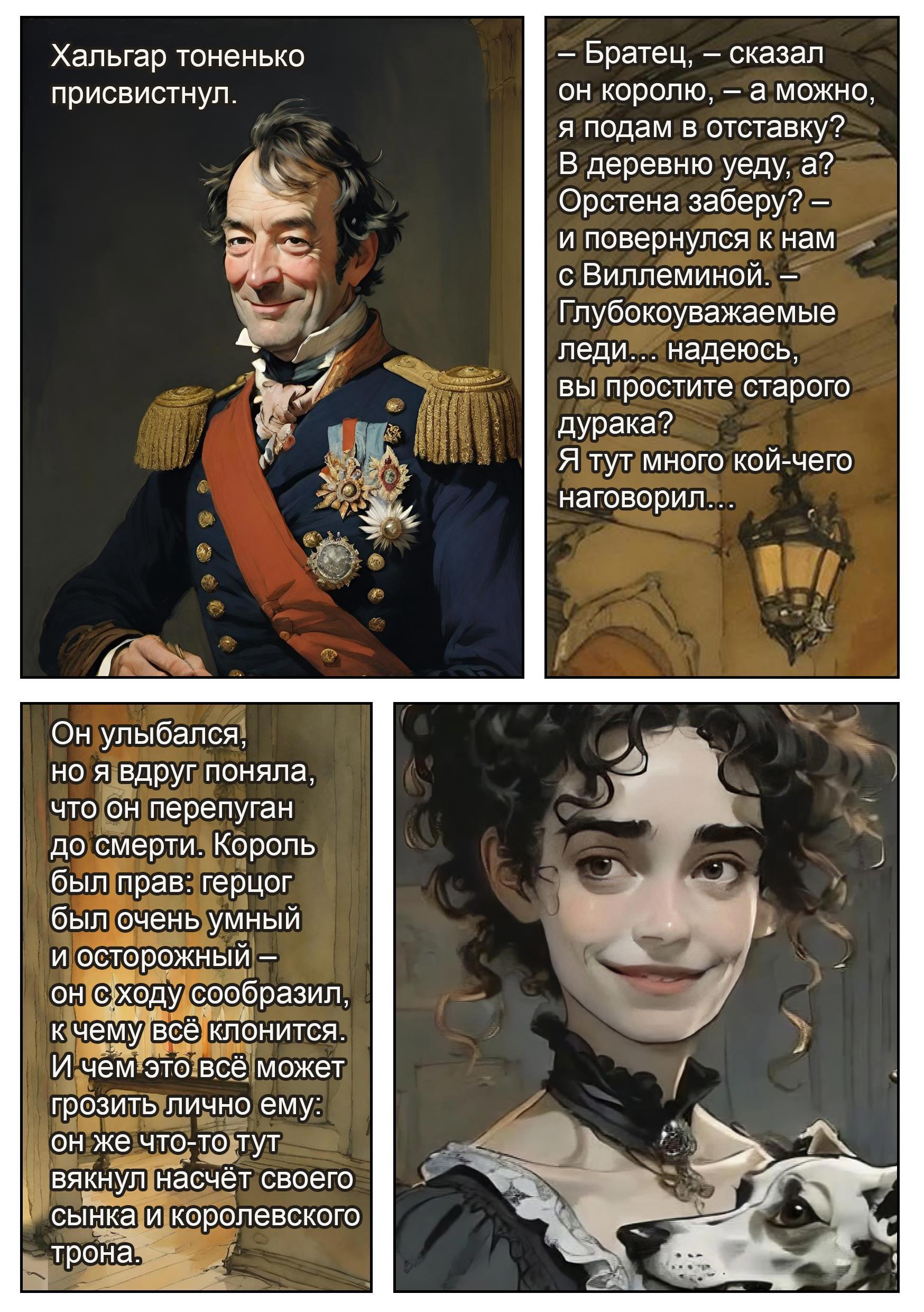 *и да, было бы дивно, конечно, сделать такую книгу. Но, как говаривал незабвенный Гекльберри Финн, это не на тридцать семь лет работа, а на все тридцать восемь. Потому что эти картинки сначала рисуются от руки, а потом с ними очень много возни по доведению до ума. Думаю, что настоящий художник справился бы с этим делом быстрее, чем не умеющий рисовать я и нейросеть.