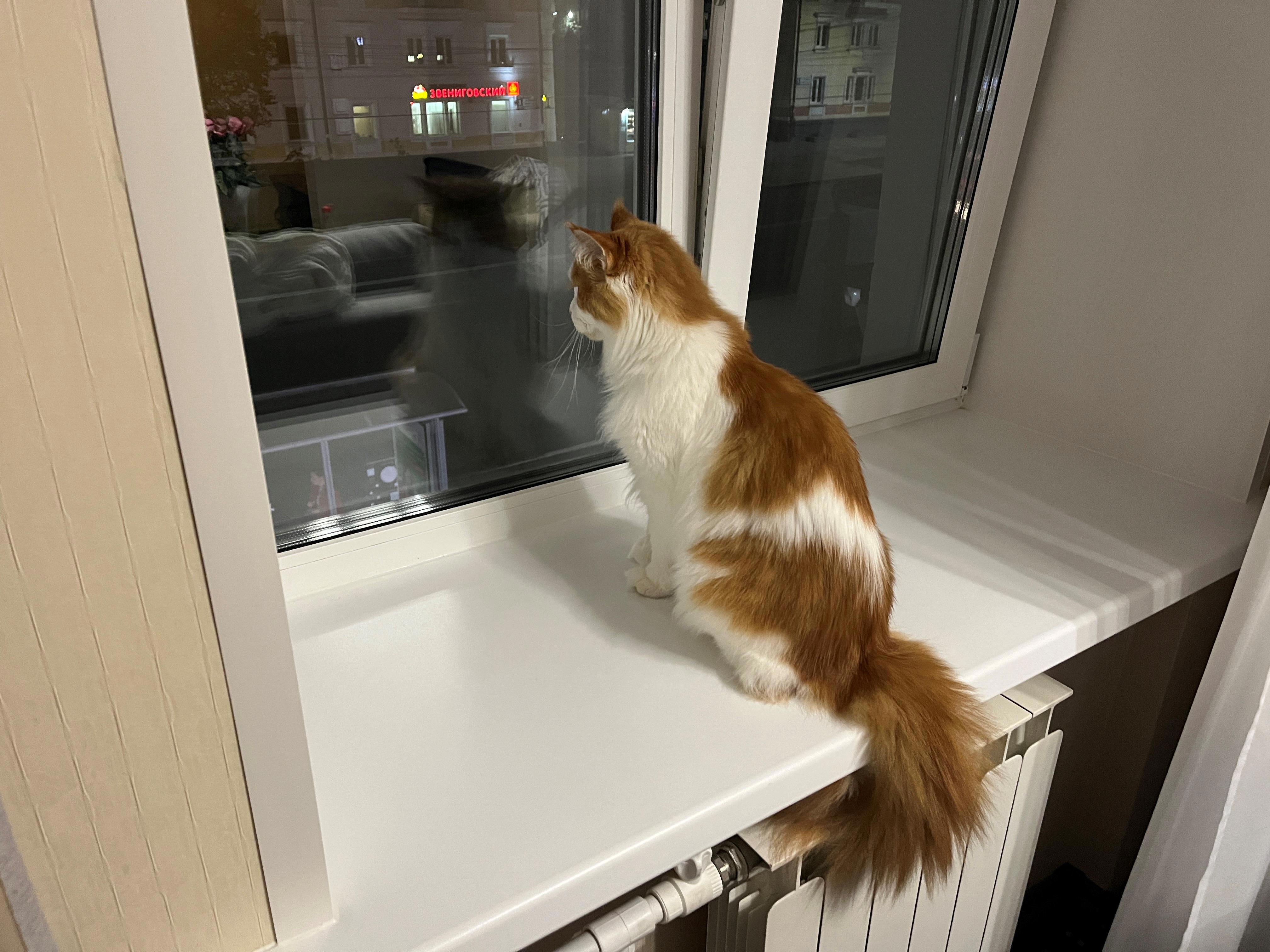 На широких подоконниках красотка коротает свои вечера наблюдая за центральной улицей Чебоксар.