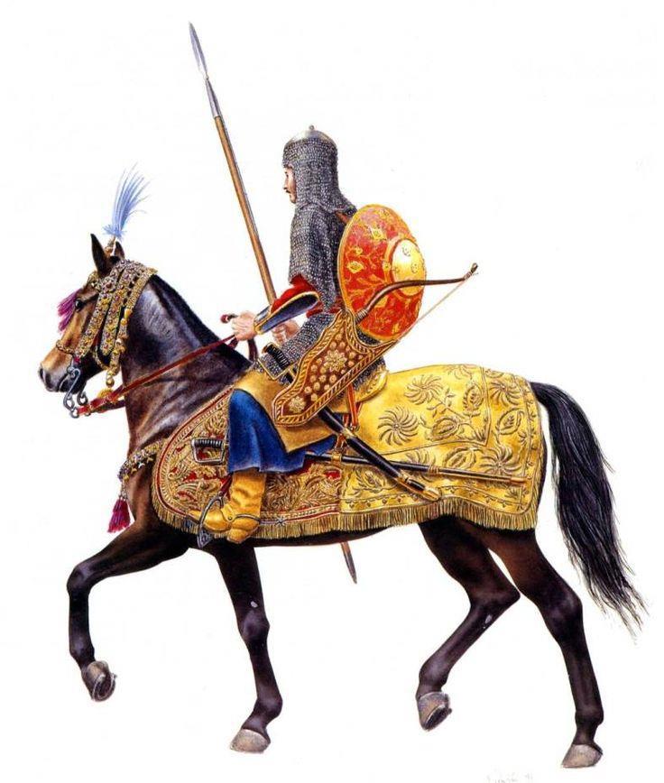 Остальные восточные доспехи состоят большей частью из небольших тонких, в большинстве случаев богато украшенных позолотой пластин, соединенных между собой кольчужными полосками. Часто под ними находилась подкладка из ткани, такой как камчатное полотно, или они были оторочены дорогой материей. Восточные конские доспехи применялись в войнах еще в начале XVIII столетия.